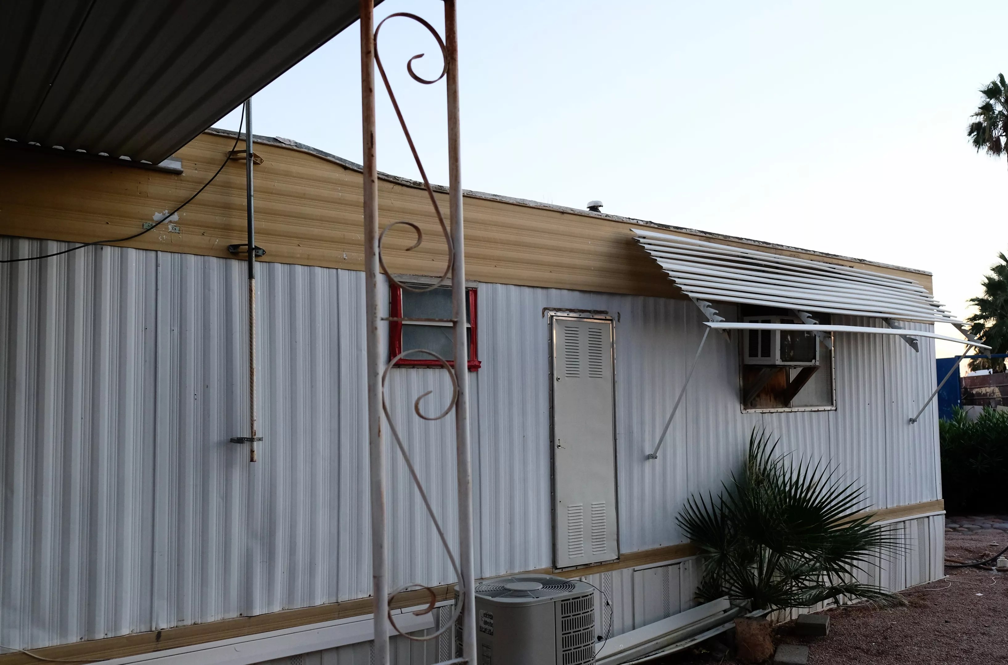 One family’s 1968 mobile home in Mesa Gardens that, because of its age, cannot be moved.