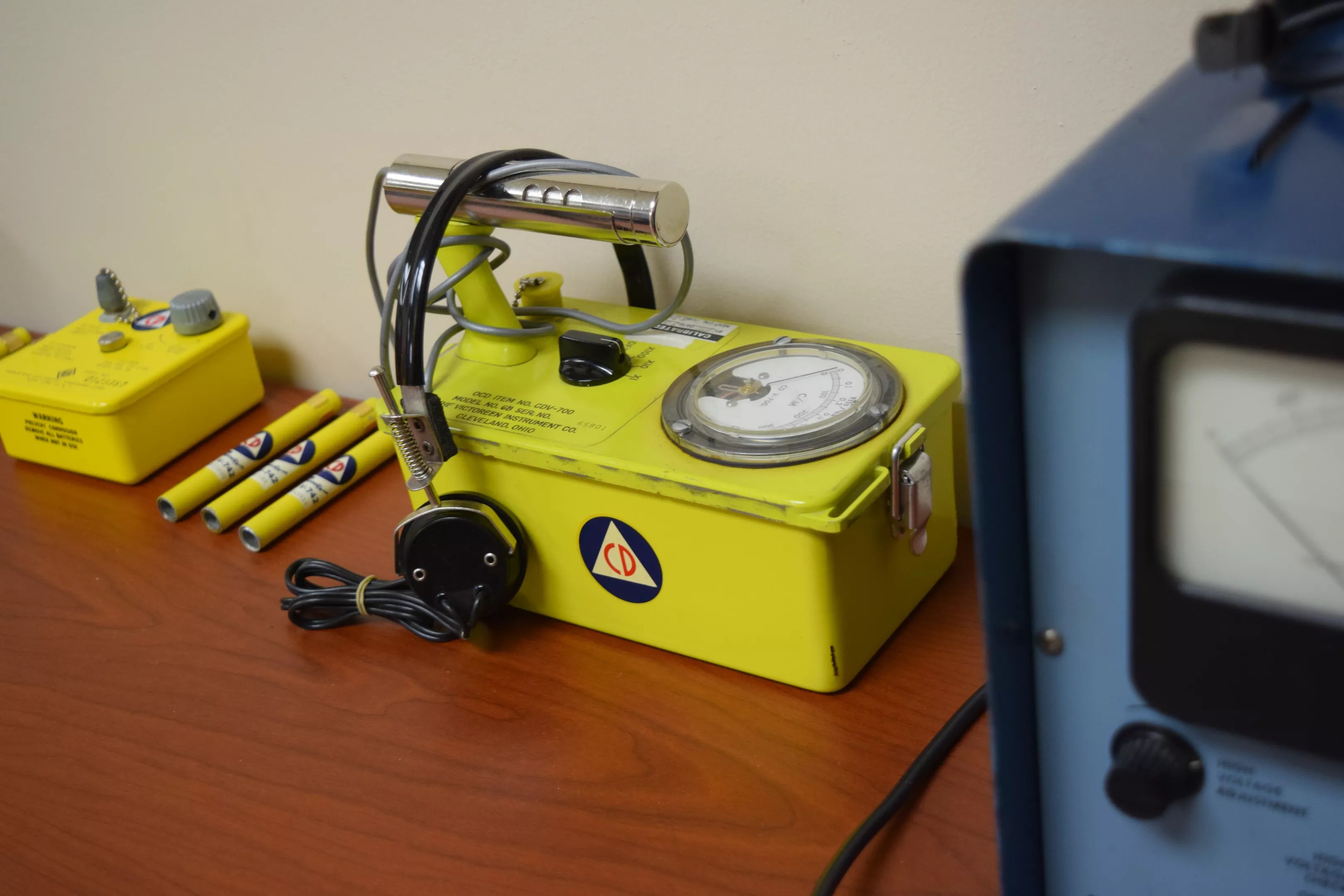 The fallout shelter still has old Civil Defense supplies: a pair of Geiger counters, an information pamphlet, and cans of water, all with the C.D. logo. By the time the Soviet Union collapsed, the practices of Civil Defense had transformed into modern-day emergency management, more attuned to dealing with floods and hurricanes than ICBMs and fallout borne on a mushroom cloud.