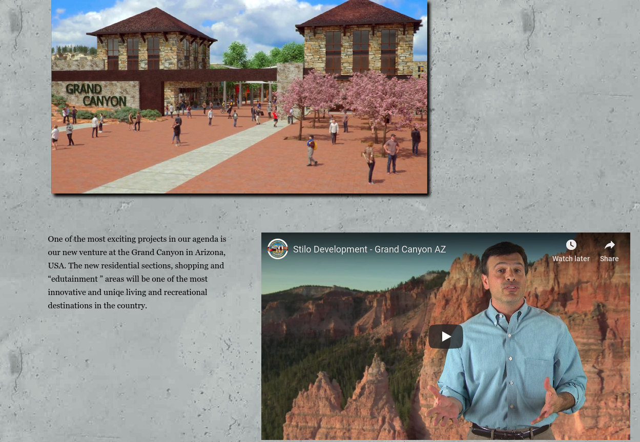 A screenshot of Stilo’s website, touting its development ambitions near Grand Canyon.
