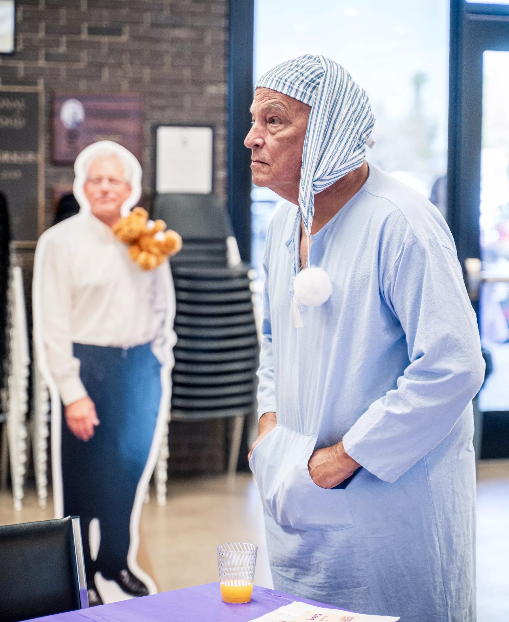 The energy was anything but sleepy, though. Attendees scarfed down gourmet muffins and coffee as they competed in a pajama contest, winning sleep-related paraphernalia like sleep masks and coffee beans as prizes. They also buzzed through a trivia game. One question: “In 2022, Rep. Schweikert was sued by a private citizen for using his image without consent on mailers sent to tens of thousands of voters that were considered…” Answer: “Homophobic.”