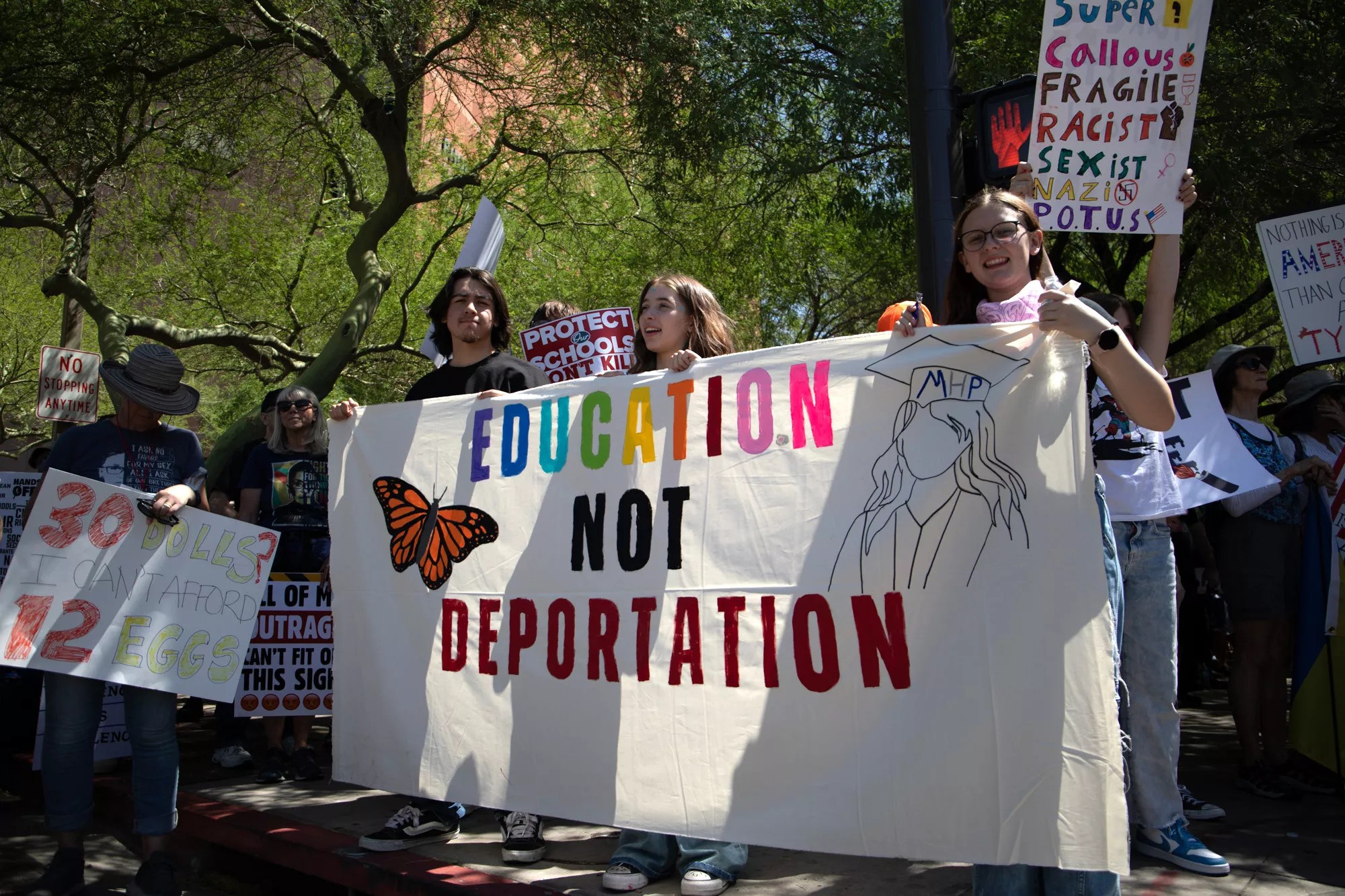 On Thursday, hundreds of Arizonans marched from the Arizona Capitol to downtown Phoenix in protest of President Donald Trump and his countless assaults on the economy, immigrants and the Constitution.