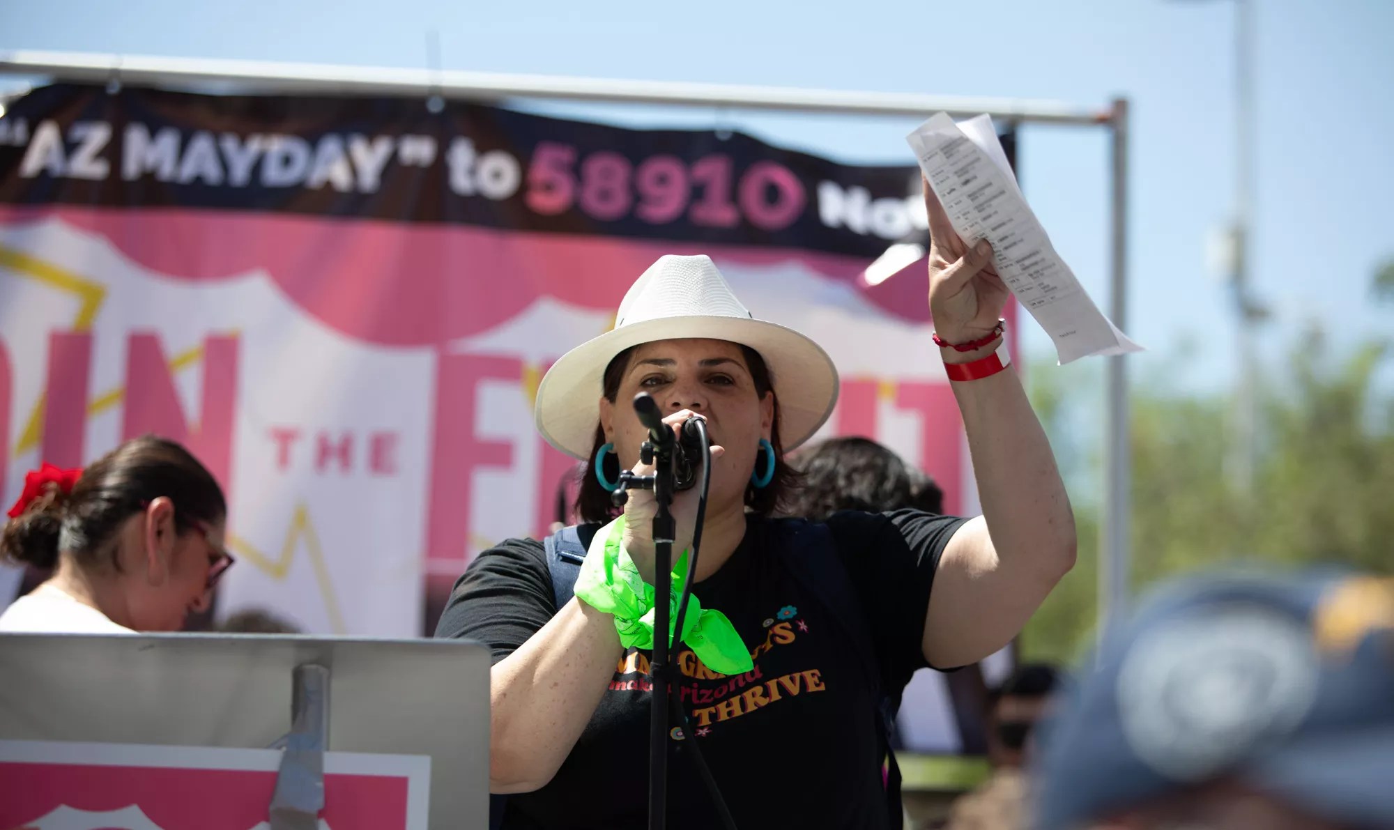 Dubbed the “May Day” protest – May 1 being a day historically used to advocate for worker rights – the event was organized by a host of groups, including Save Our Schools Arizona, Living United for Change in Arizona and Unite HERE Local 11.