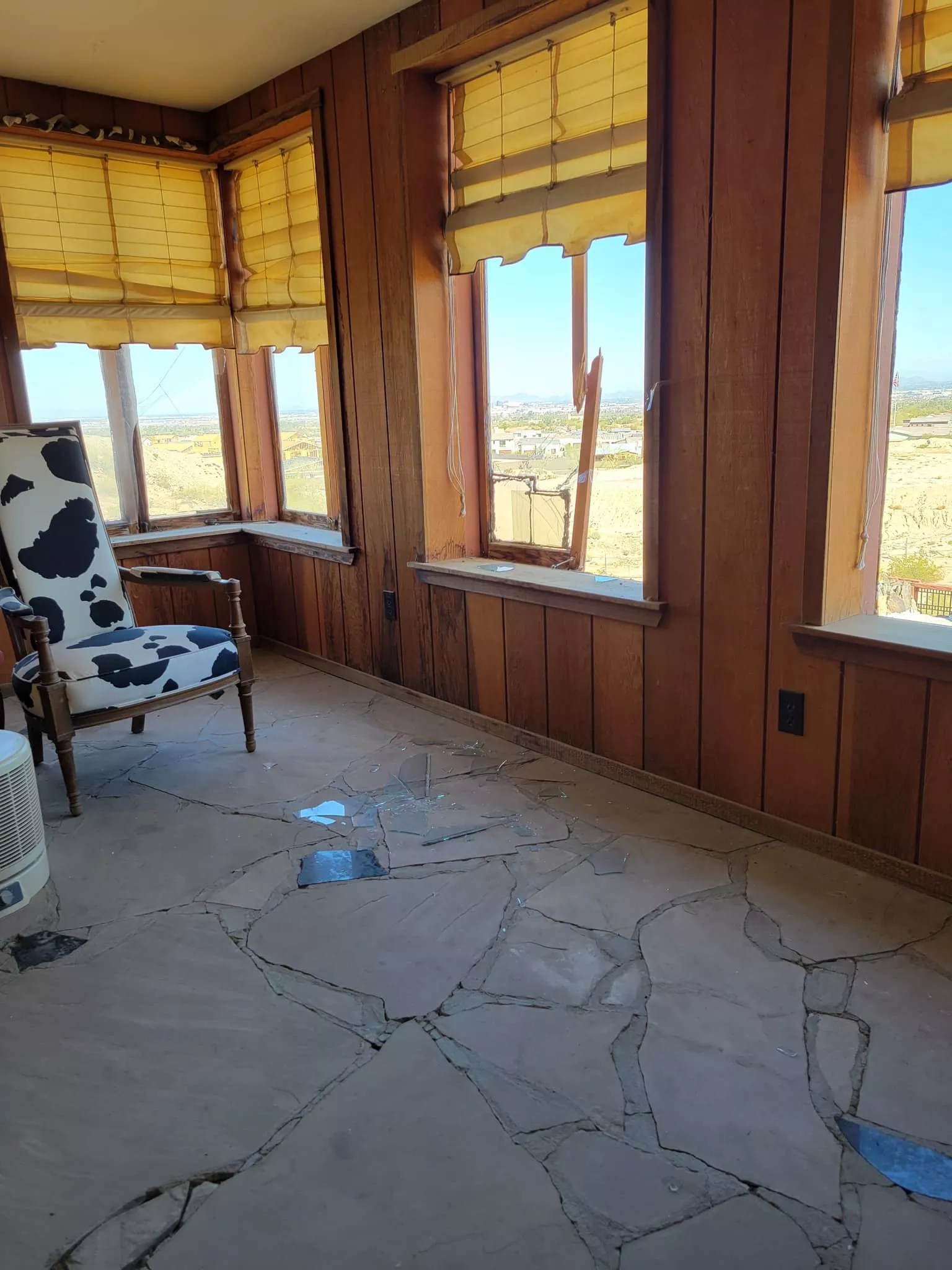 Photos that the Phoenix police provided document the extent of the damage. Rooms were left in disarray. Shattered glass covered the cobblestone floors.