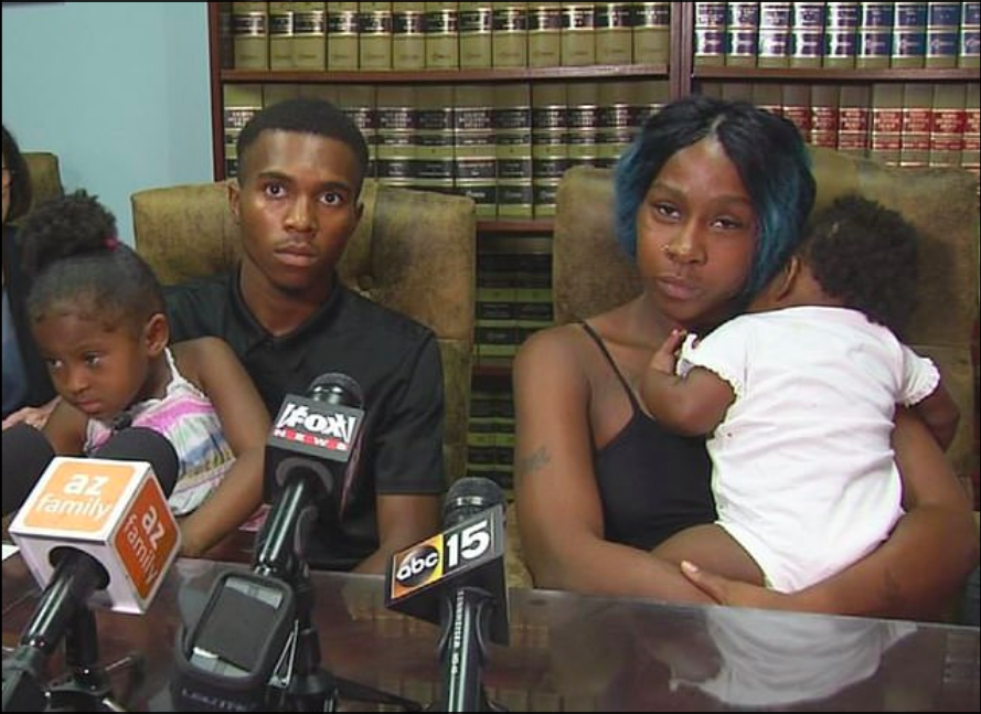The incident report states that on May 27 (not May 29, as the couple has previously said), Phoenix police officers responded to an unrelated shoplifting call at the Family Dollar on North 36th Street. While there, store employees informed police of another shoplifting incident and directed officers toward two women, Iesha Harper and her aunt, and Harper’s two young children, who were getting into their car outside.