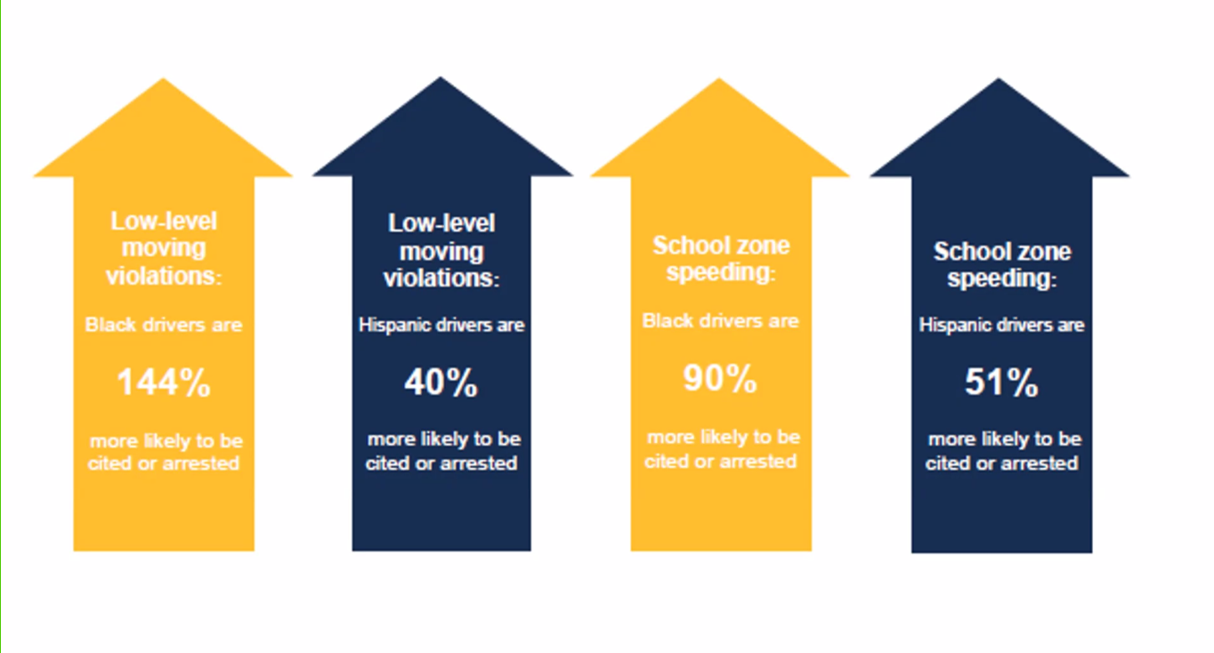 The same bias appeared in the department’s traffic stops. Black people comprise 7.4% of Phoenix’s population but are arrested or cited three times as often as white people for traffic-equipment-related offenses. Hispanic people also disproportionally face citations or arrests for traffic violations.