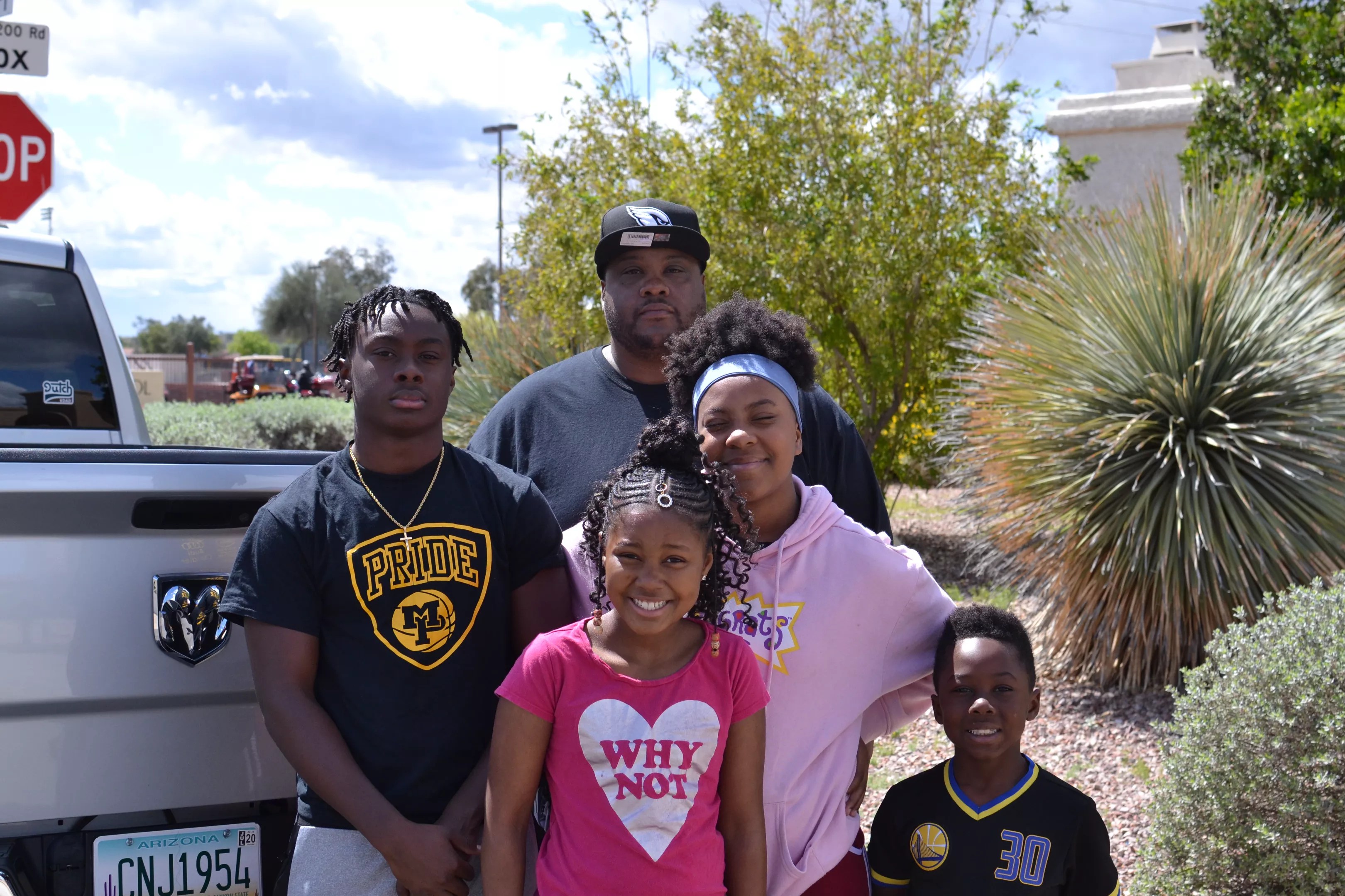 Outside Mountain Pointe High School in Phoenix. The kids attend local public schools.