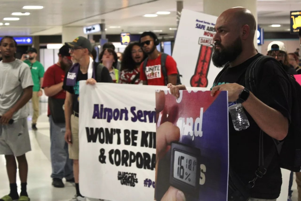 Their efforts did not go completely unnoticed. Three service workers in the Terminal 4 baggage claim told organizers that they wished to join the union but have faced resistance. The workers, who are employed by a company that offers wheelchair transportation for Southwest Airlines passengers, said they’ve been dealing with heat concerns of their own, as well as low wages and understaffing.
