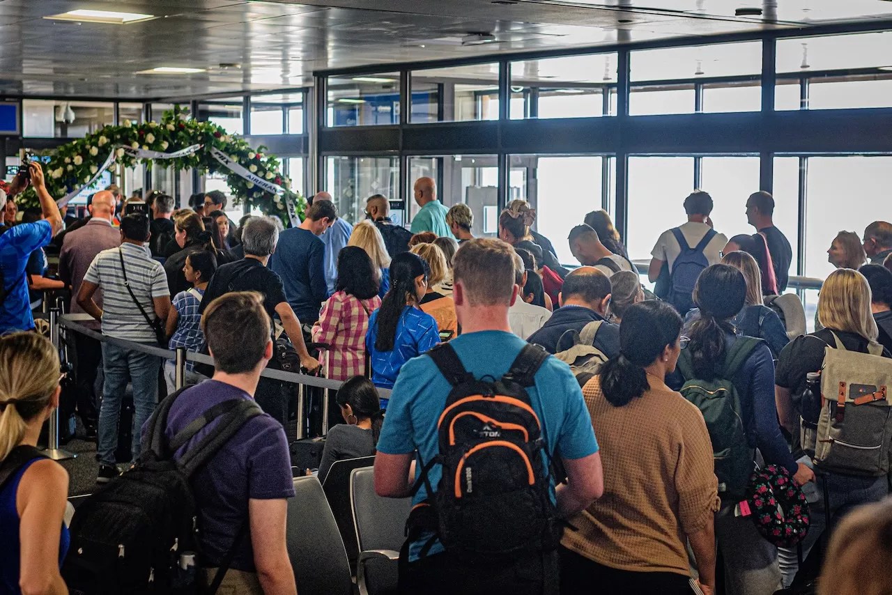 Passengers line up to board the inaugural Air France nonstop flight to Paris from Phoenix Sky Harbor International Airport.