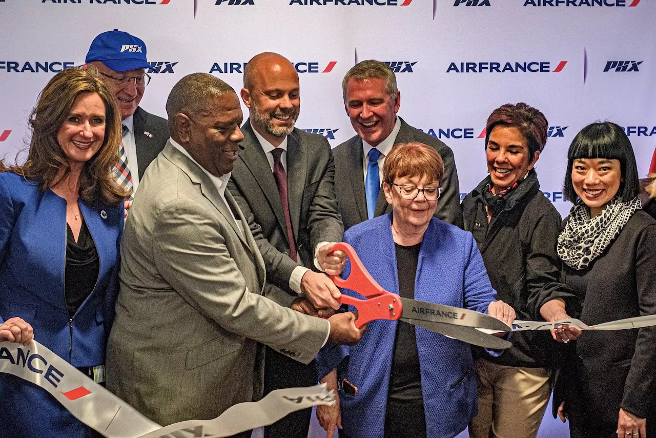 Representatives from Air France and the city of Phoenix cut a ribbon to celebrate.