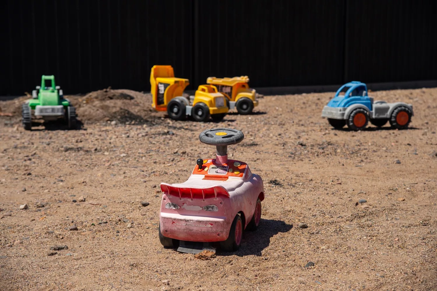 The playground at Magic Keys to Learning Children’s Development Center on Van Buren Street was noticeably silent as the children were cooped up inside. In the yard, plastic toys bore the brunt of the burning sun.