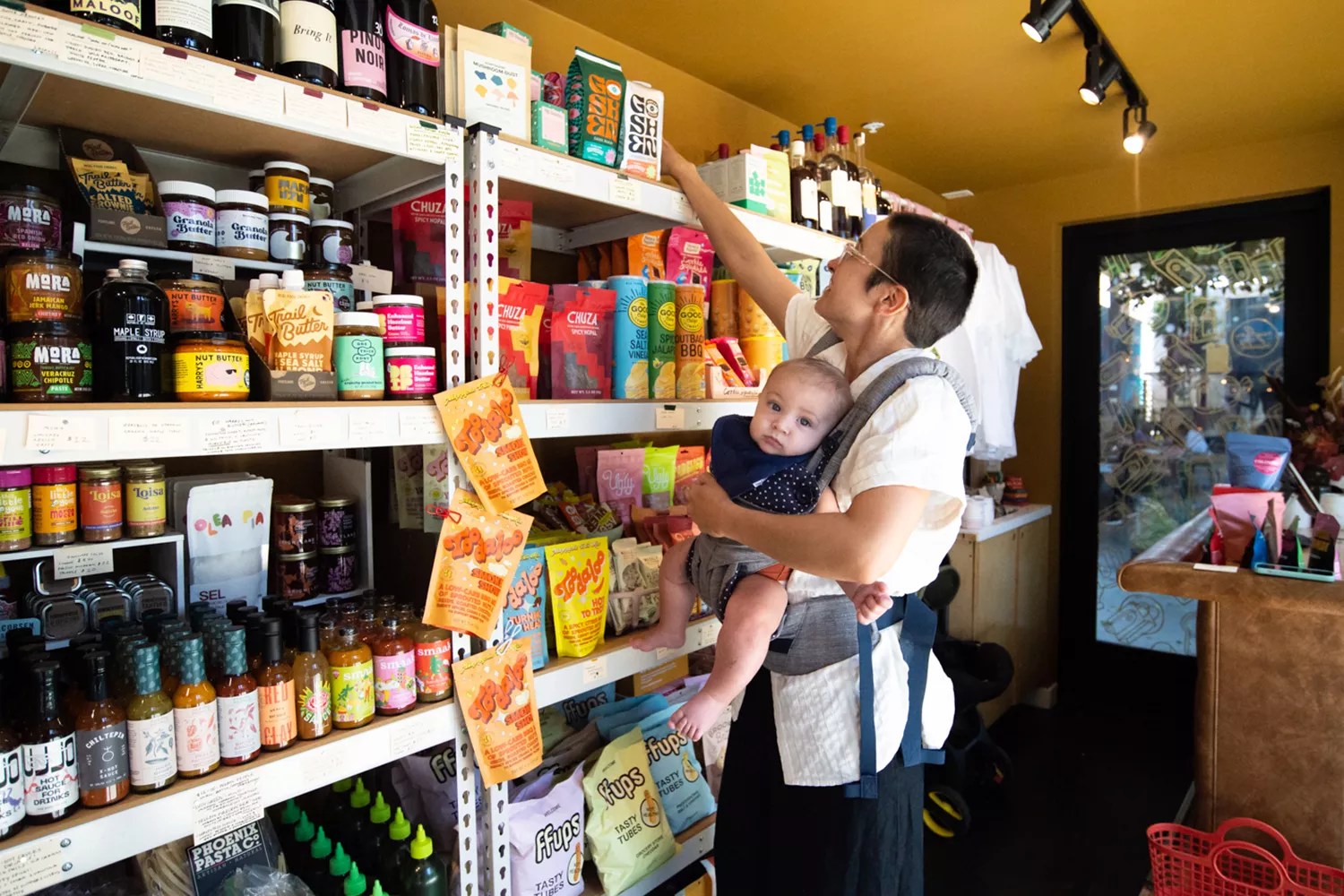 Neighbor Market co-owner Asta and her son, Miles, opted to keep their front door latched tight to beat the heat. Because the air conditioning inside is set to 75 degrees, Asta said that she has loved coming into the shop to work but admitted that she leaves before 3 p.m. to avoid the hottest part of the day.