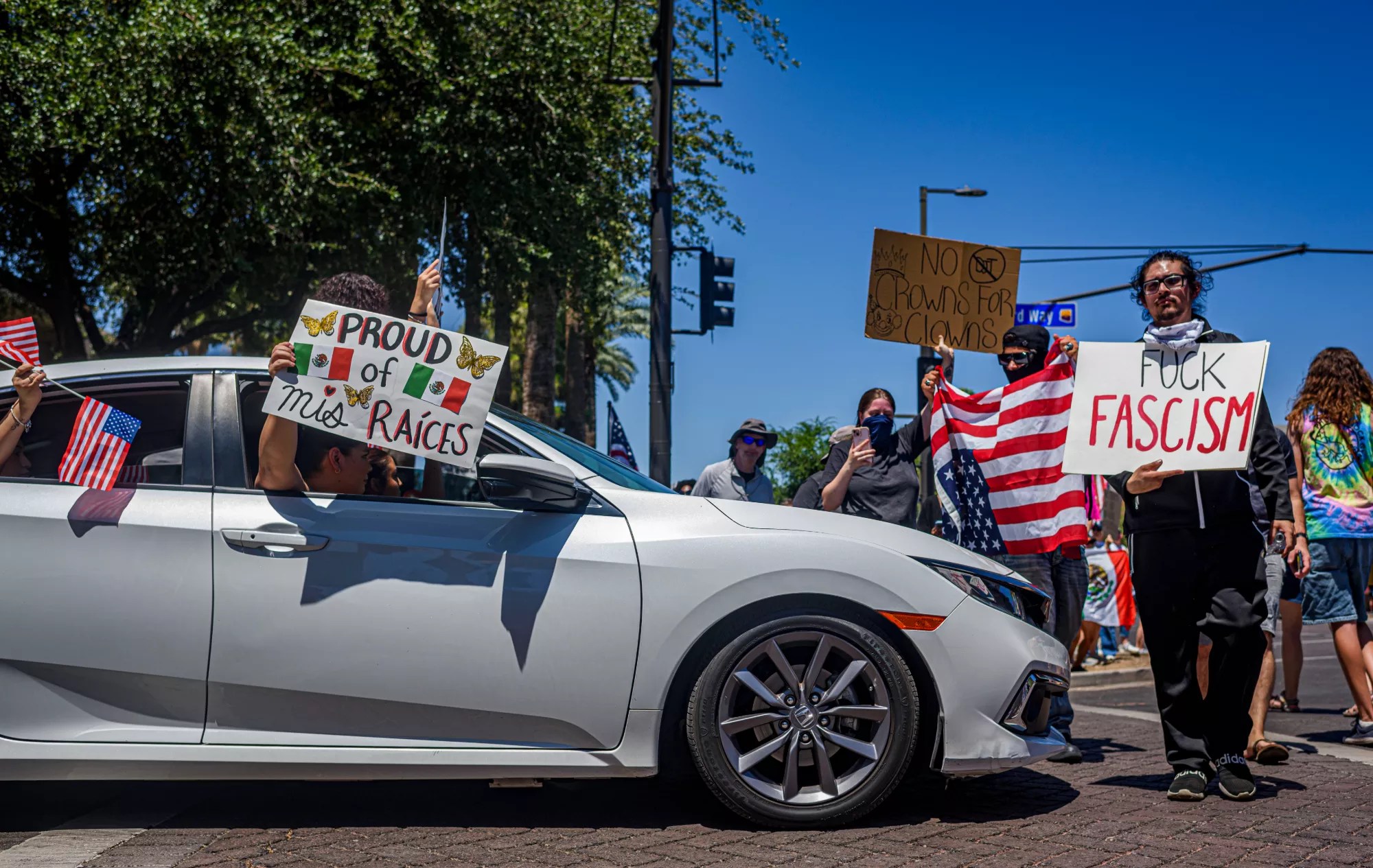Thousands rebuke Donald Trump on his birthday at the Arizona Capitol and around the state, the largest such protest yet.