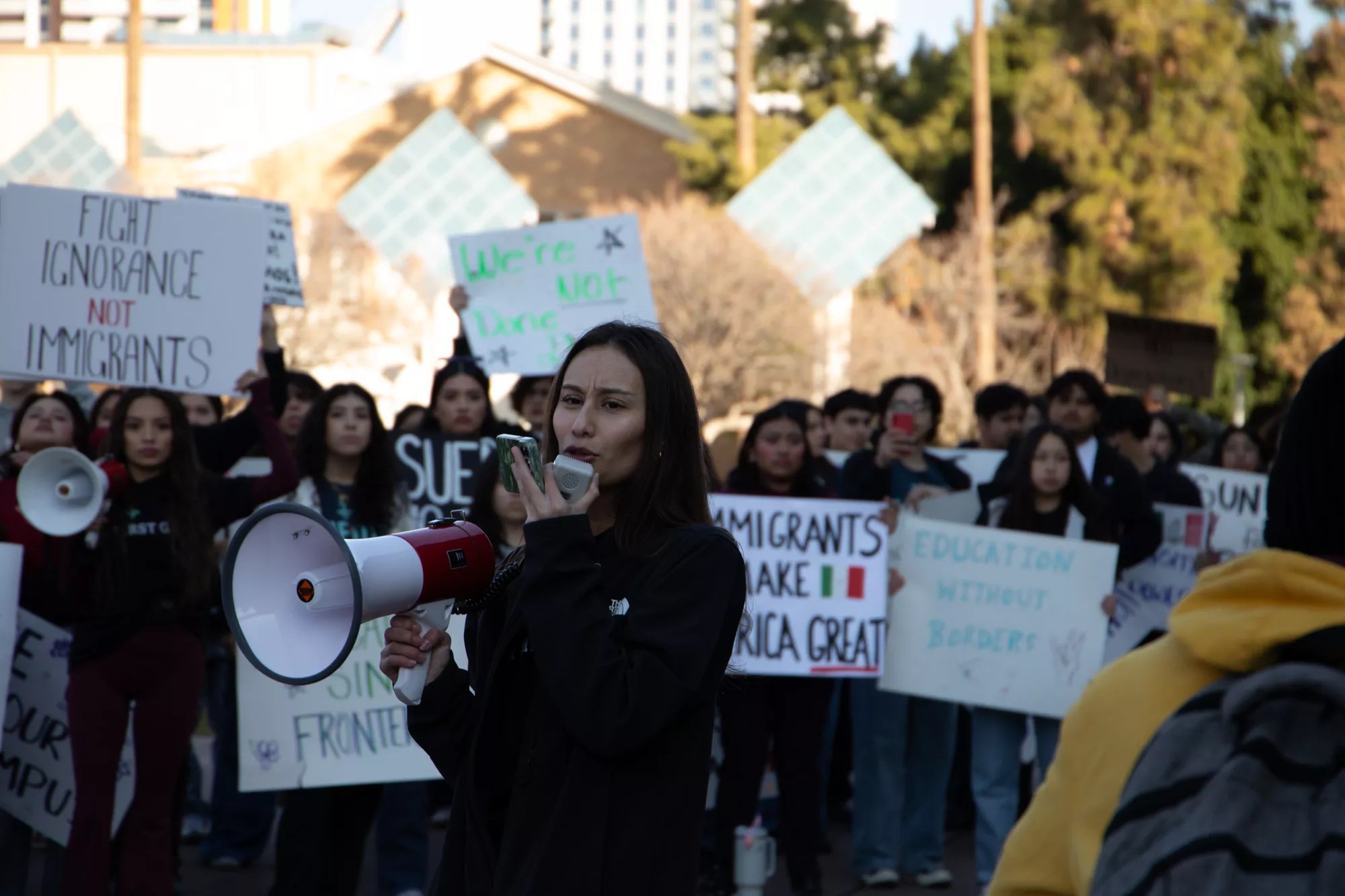 Two other students in sunglasses and black ties remained silent and did not respond to New Times’ questions. One did respond childishly to a student asking Alvarado questions by replying, “Why are you ugly, dude?” All declined to say whether its members had reported anyone to ICE yet.