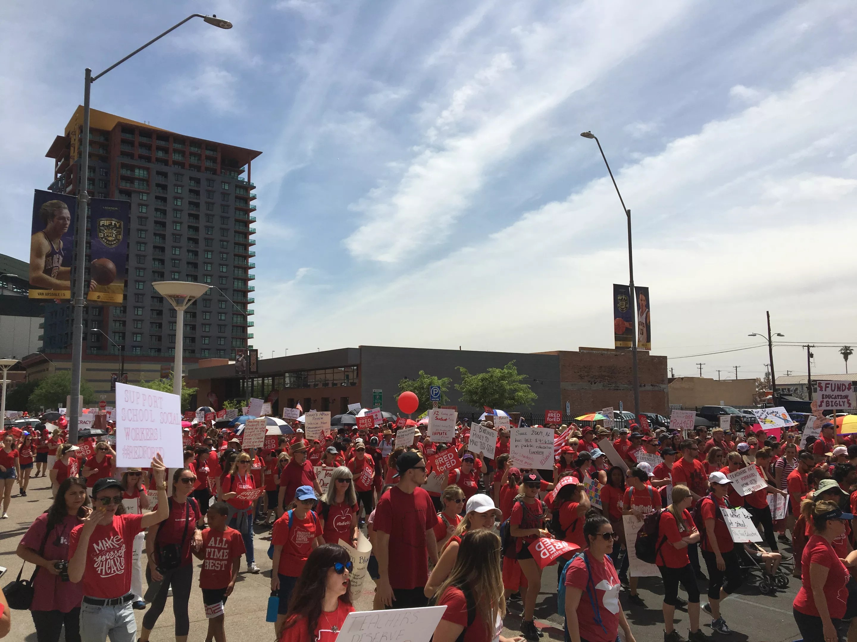 11:30 a.m.: Thousands of teachers march to the Arizona State Capitol