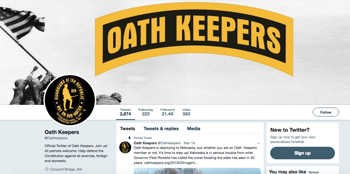 The official Twitter page of the anti-government militia group known as Oath Keepers.