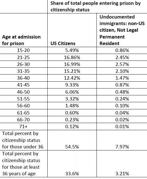 Share of convicted criminals entering prison by year of age and citizenship status for Arizona (1985 to June 2017).