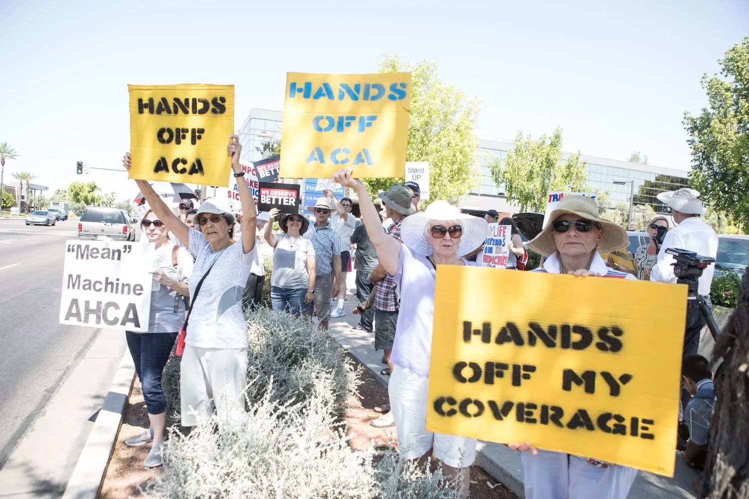Protesters lined the streets earlier this year outside the Camelback Road offices of Arizona’s Republican U.S. Senators Jeff Flake and John McCain to voice their dissatisfaction with the newly unveiled Republican health care bill