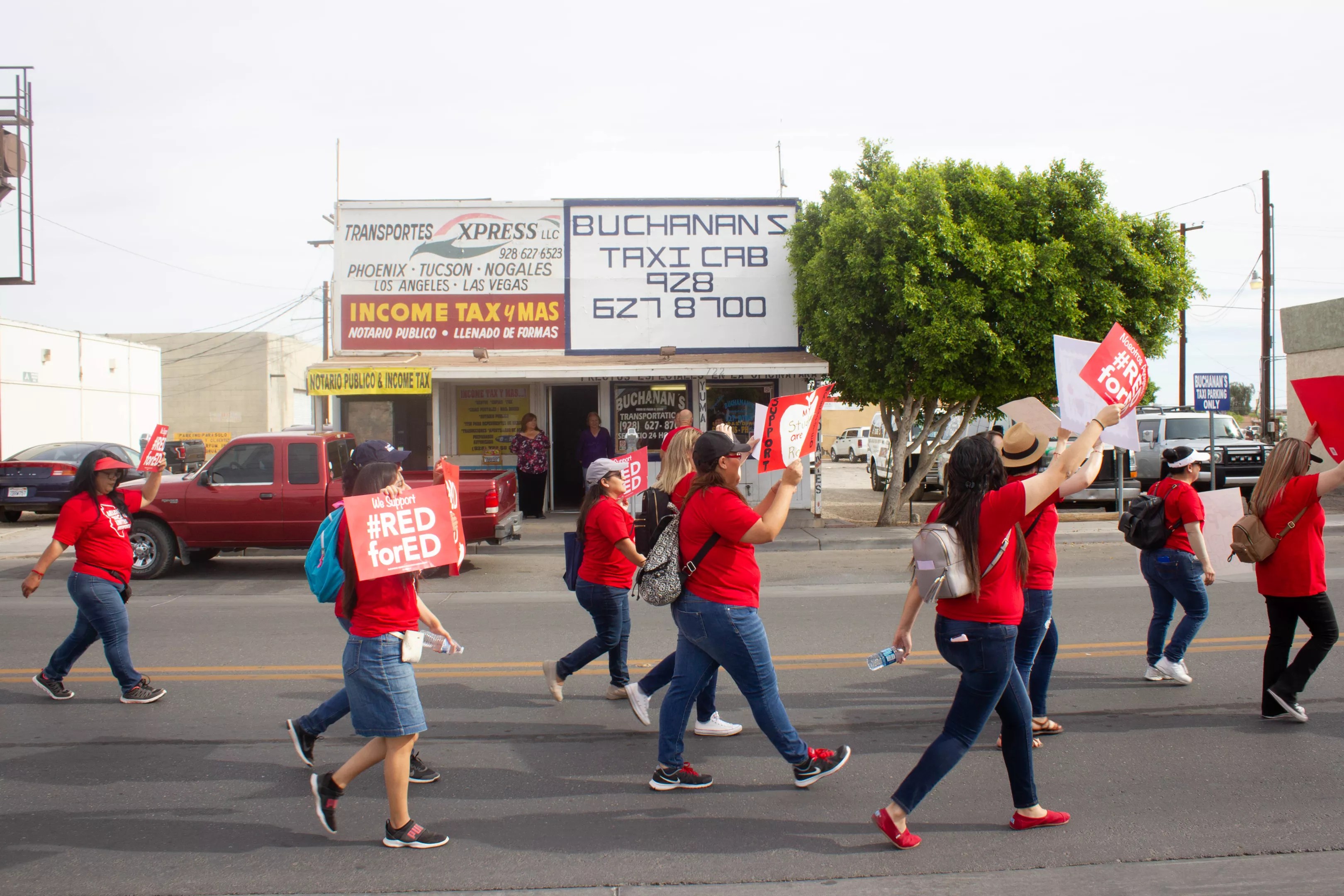 Teachers march in the small border town of San Luis, Arizona.