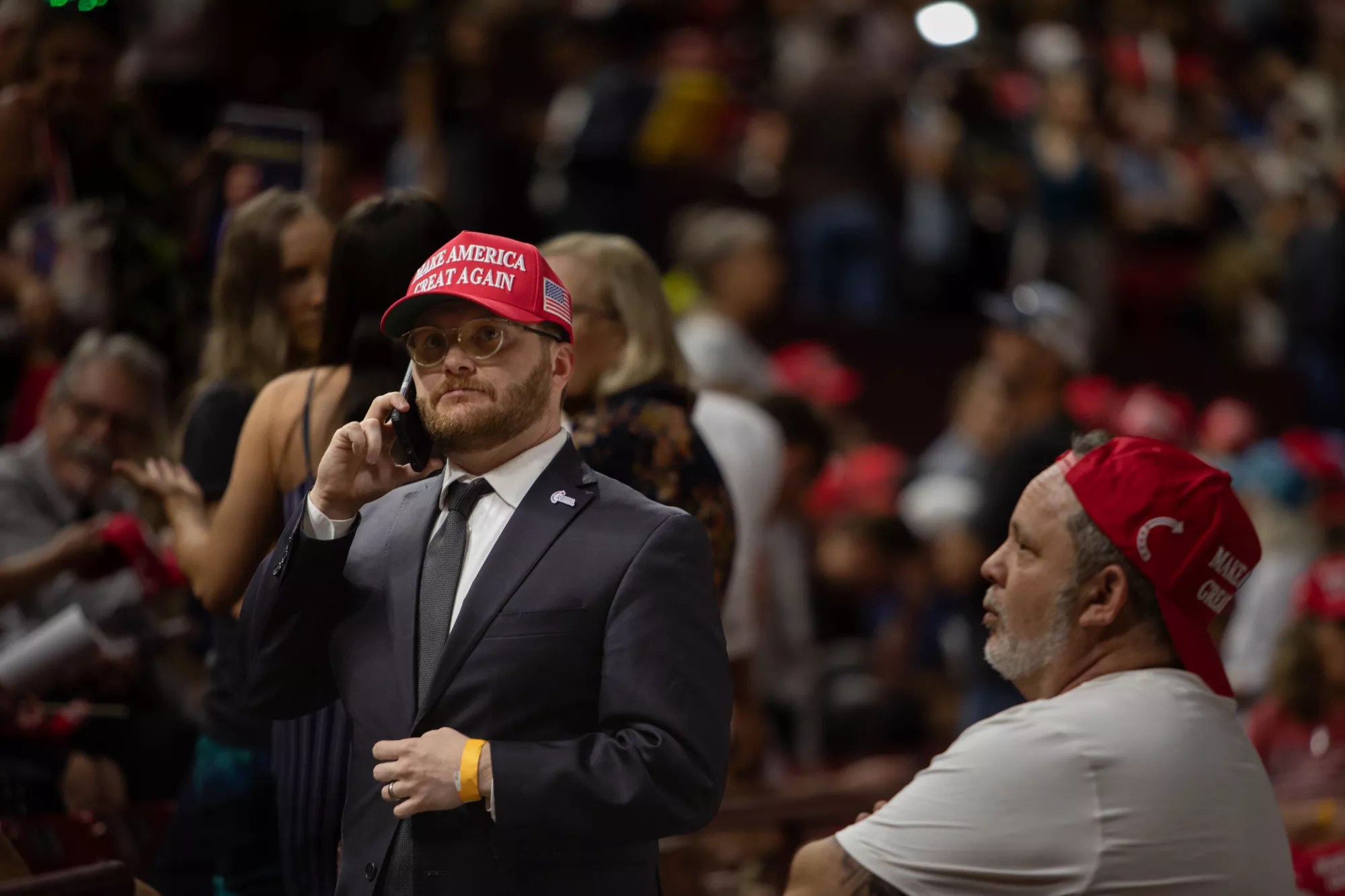 Tyler Bowyer, Turning Point’s chief operating officer and one of the Arizonans indicted for their role in attempting to overturn the 2020 election, encouraged attendees to vote. At the door, attendees were met with TPUSA staff and volunteers wearing white “I am Charlie” t-shirts, asking if people were registered to vote – particularly for the upcoming Salt River Project election, which the organization has gotten involved in.