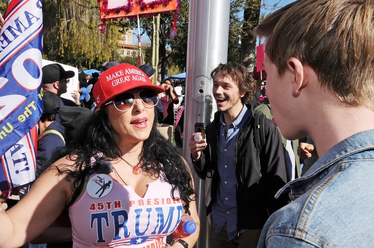 AZ Patriots is an “anti-immigrant and anti-Muslim extremist group,” according to the Southern Poverty Law Center. Harrison made a name for the organization with her guerrilla anti-protests, antagonizing protesters with opposing views and posting videos of the altercations on Facebook.