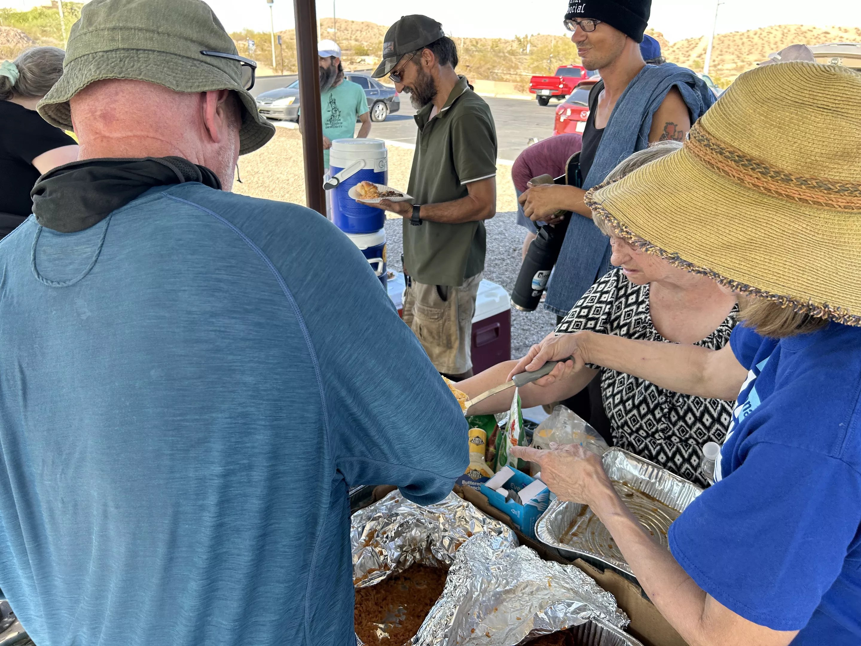 Those dozens of volunteers, including former Tempe Councilmember and state Senate candidate Lauren Kuby, have kept his “Sunday Picnics” going while Davis stays outside of park boundaries. Other neighbors have dropped off water, ice, pizza and other food. On Sept. 8, Davis said, they also brought clothes, dog food, baby powder and plenty of other necessities to the picnic.