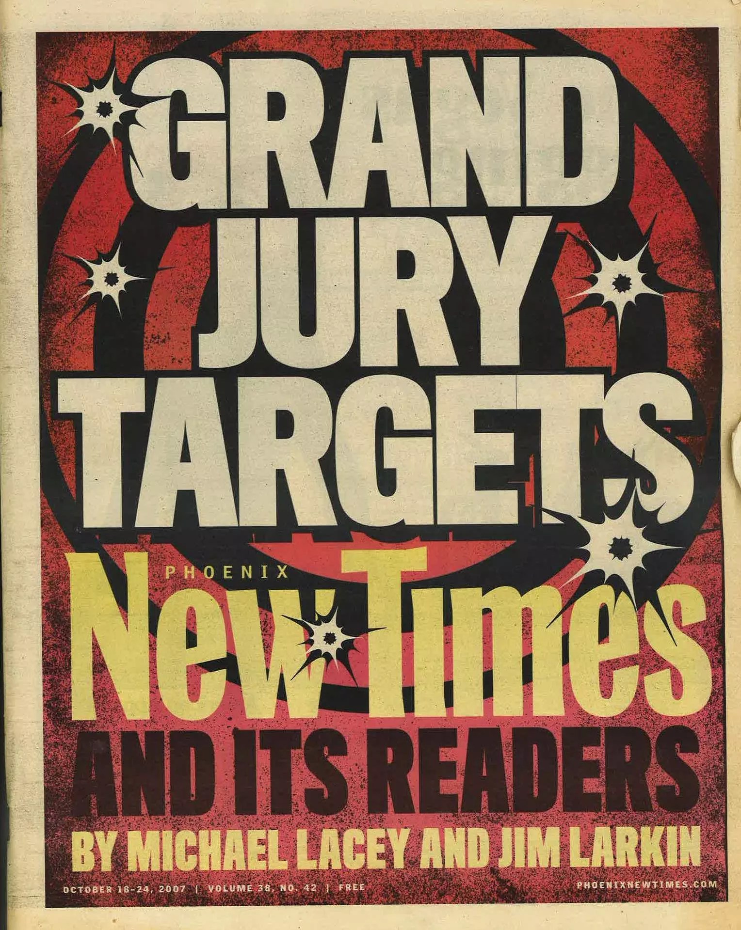 Perhaps the most famous of Lacey and Larkin’s legal triumphs would come in 2007, when the two men published a cover story revealing the existence of a grand jury looking into the paper and its readers as a consequence of the New Times‘ investigations into Maricopa County Sheriff Joe Arpaio’s land holdings. Though illegal, revealing grand jury secrets is only a misdemeanor. Still, Arpaio’s deputies arrested Lacey and Larkin the night the issue hit the stands, trundling both men off for a night in the pen. The following day, a national outcry forced the County Attorney to drop the charges and the grand jury with them.
