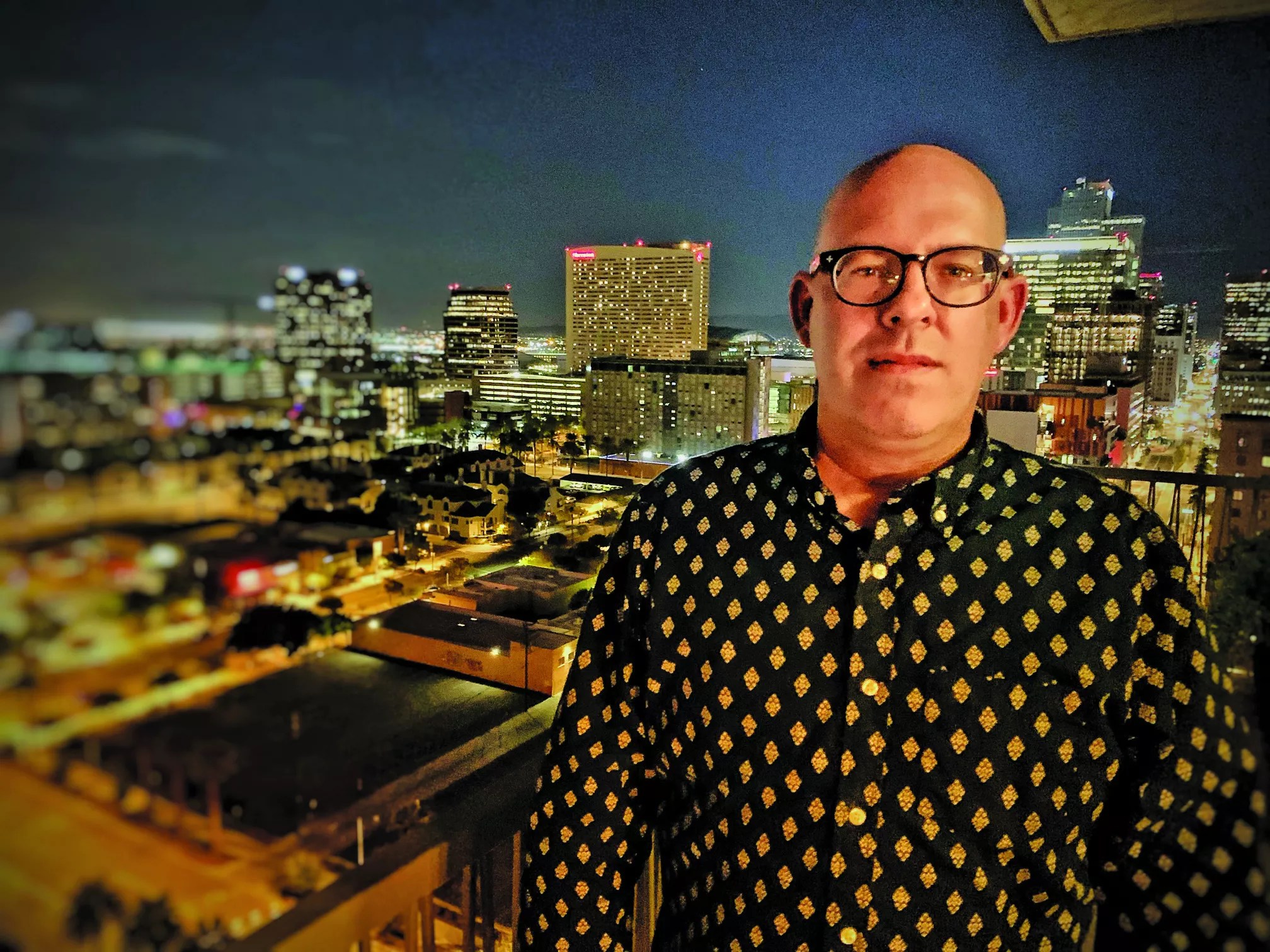Finally, I think. Someone who works here. But instead, it’s a barefoot guy carrying a filthy Trader Joe’s tote through the lobby of downtown Phoenix’s fanciest new building. I’m not surprised to see him; several tenants have complained to me that homeless people routinely wander in, helping themselves to Keurig macchiatos and treating The Stewart’s lobby as a crash pad. This fellow nods as he walks past, headed toward the lounge behind me.