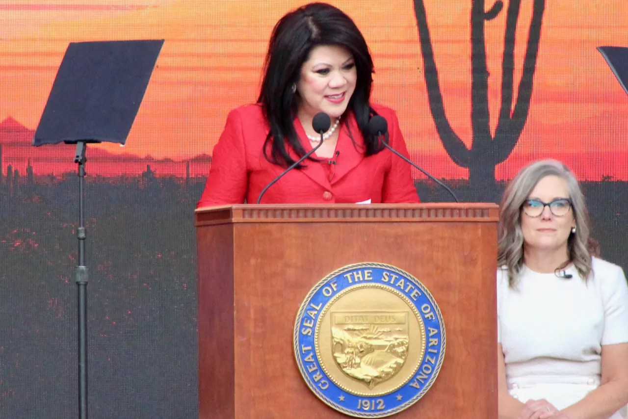 In her inaugural address, she painted herself as a bipartisan native Arizonan social worker-turned-politician just like she did along the campaign trail. Hobbs emphasized public education, water and housing crises, and reproductive rights. She promised to reach across the aisle and always put country over party.