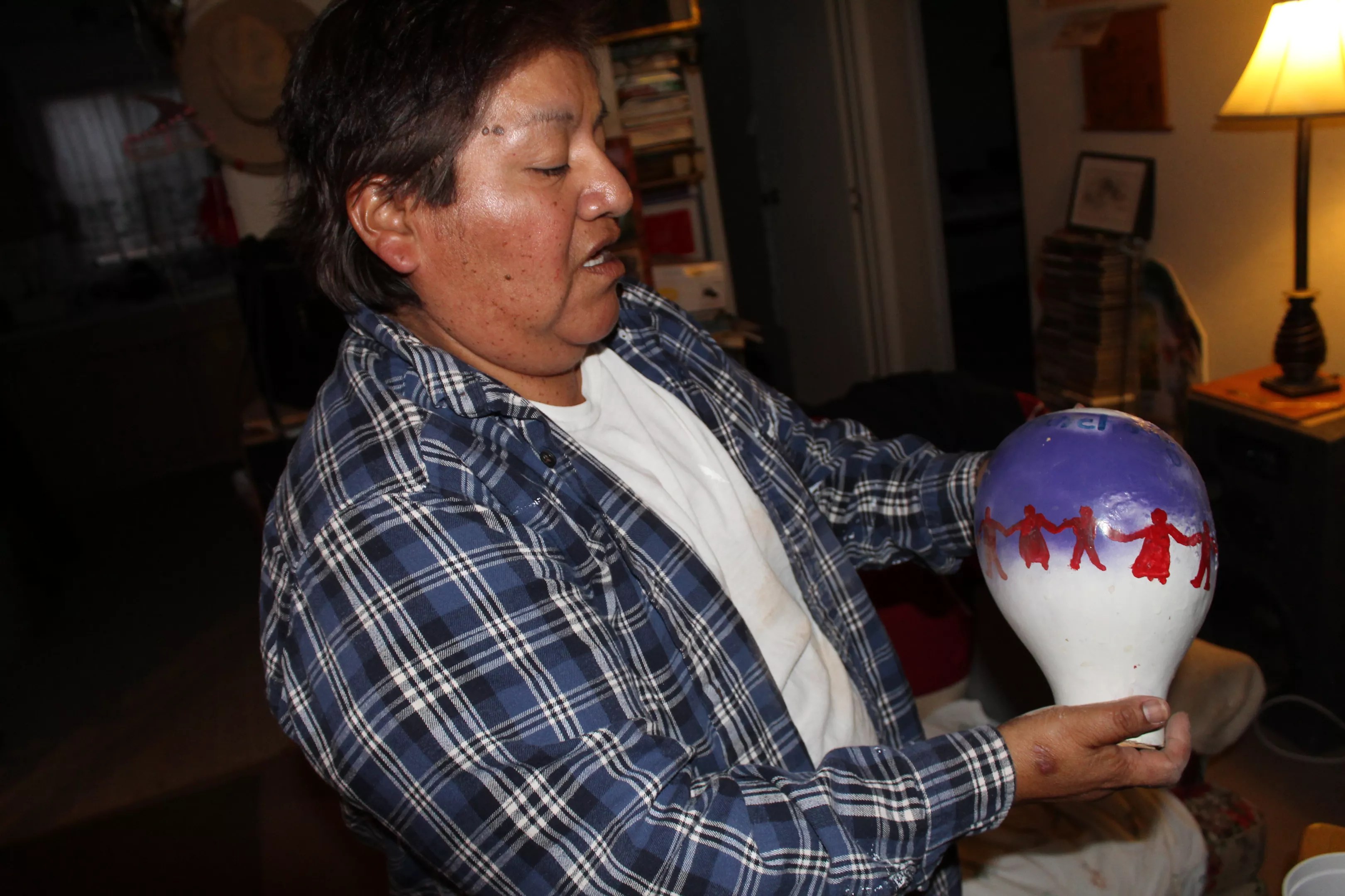 Pancho’s modest home is clean and tidy but too small for all her possessions. Nearly every free space on the floors and walls is taken up with furniture, photos of relatives, artistic sculptures that Pancho made, American flags, and Western décor.