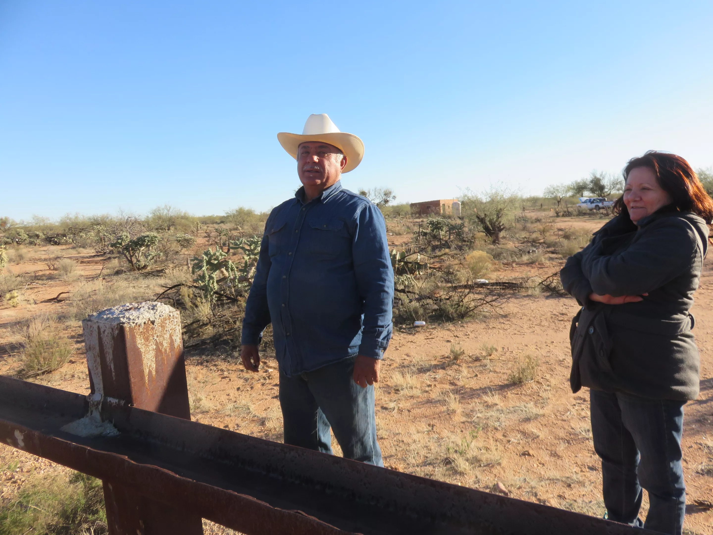 A Mexican rancher and his wife, standing on the Mexican side of the border. They don’t believe a wall would stop people from coming north because too many want to go, they said.