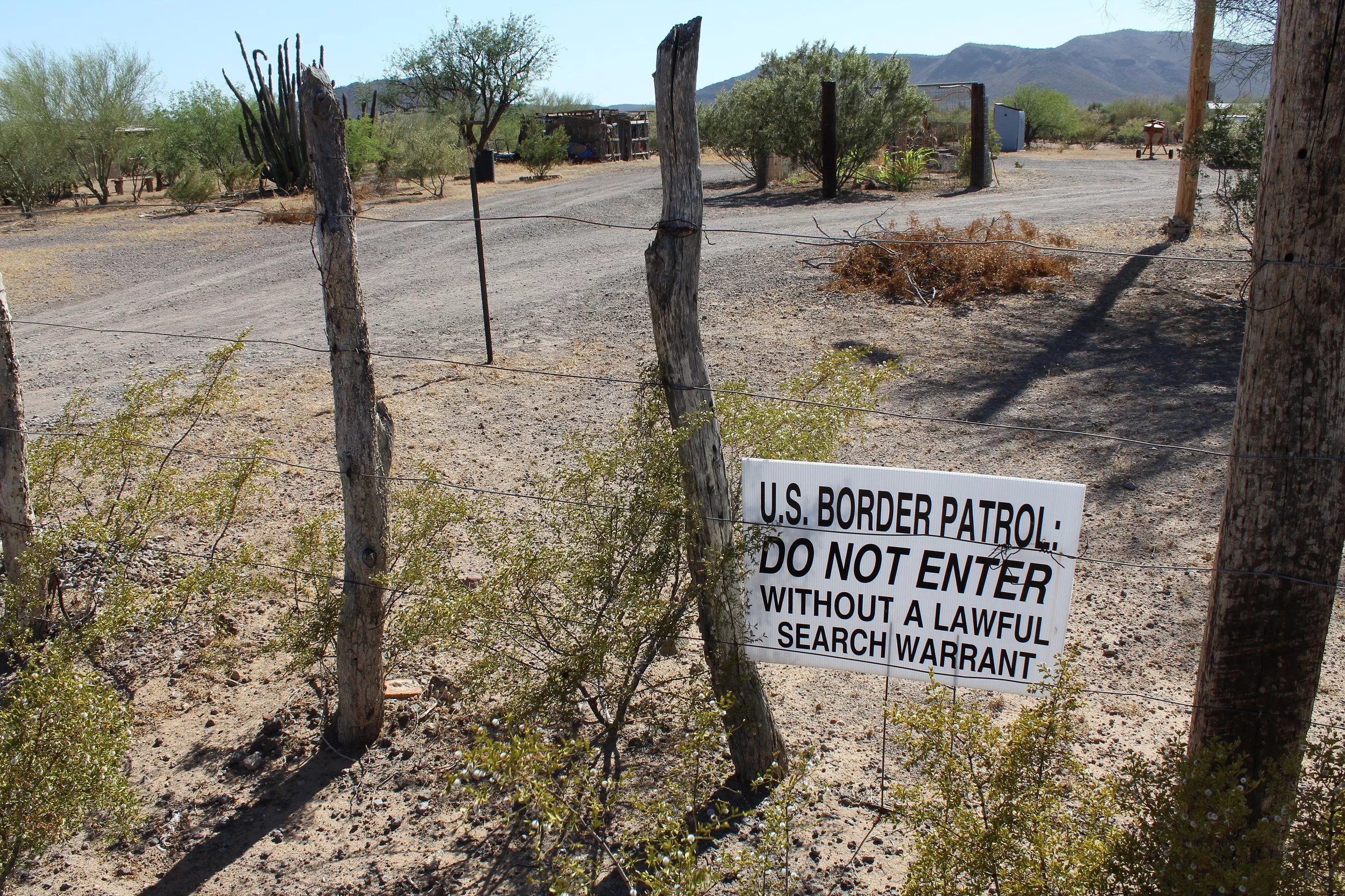 On a fence in front of her home in the village of Ali Chuk, about a quarter-mile north of the border, a sign warns Border Patrol agents keep out unless they have a warrant.