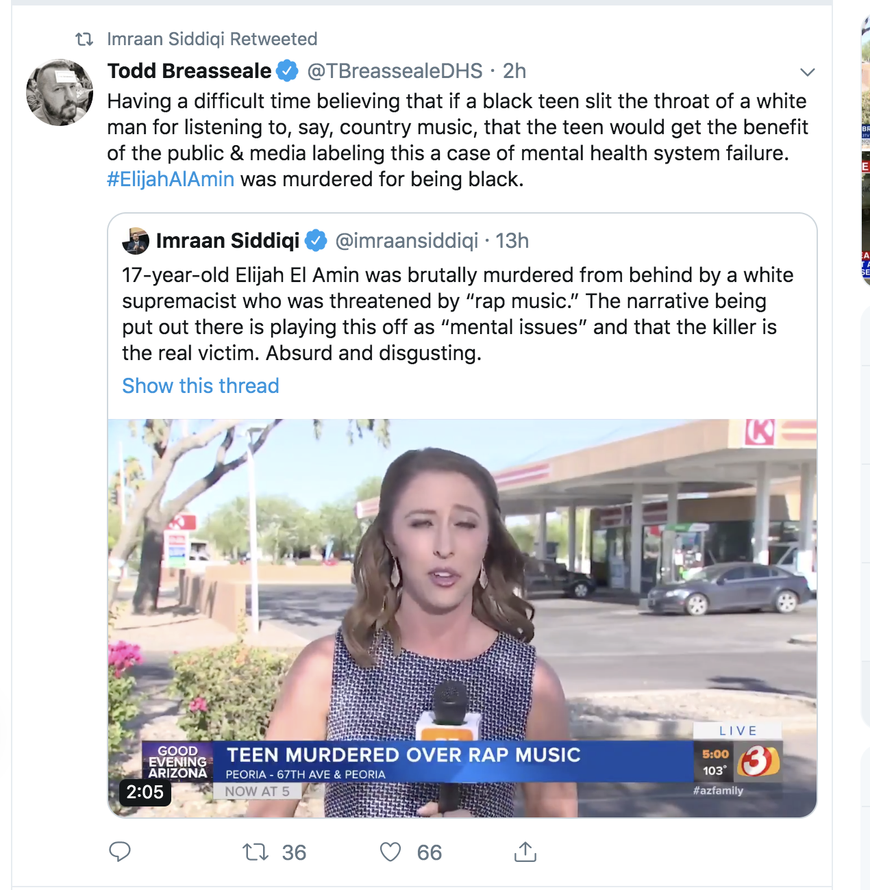 Activists on Twitter are calling for law enforcement and the media to recognize the murder of 17-year-old Elijah Al-Amin, whose throat was slit outside a Peoria Circle K on the Fourth of July, as an act of racism. Twitter