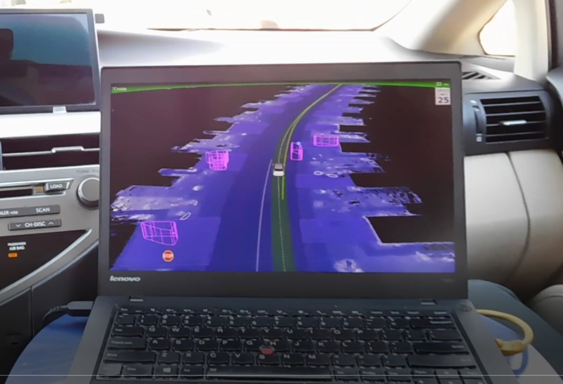 The expensive-looking hardware can’t be missed when approaching the Lexus. Black, bell-shaped LIDAR units are mounted in four places around the SUV. LIDAR stands for light detection and ranging: the devices use lasers to find the distance to objects and create a computer-generated 3D image of the SUV’s surroundings that’s displayed on a laptop inside.