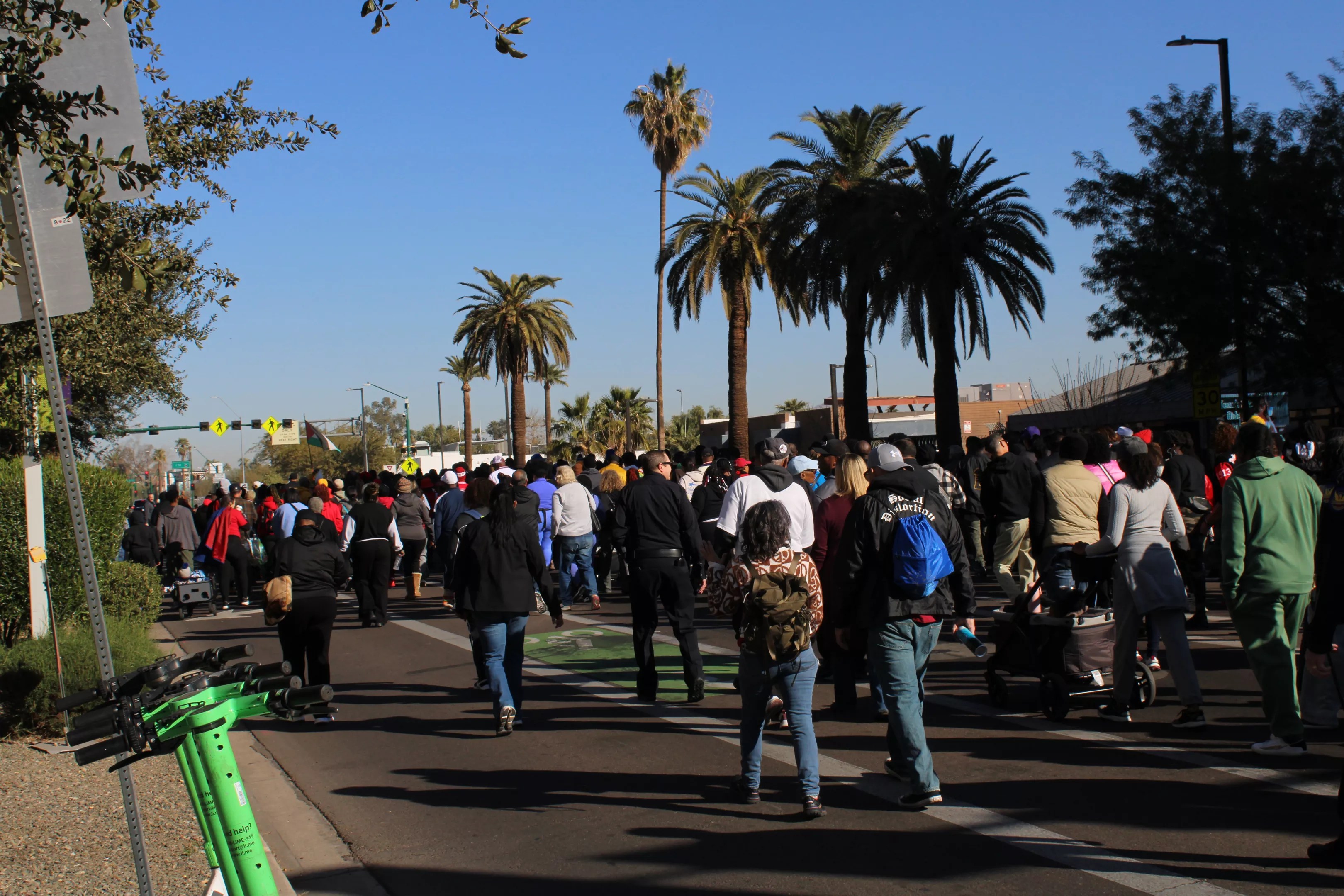 About a thousand people marched through downtown Phoenix to celebrate Martin Luther King Jr. Day