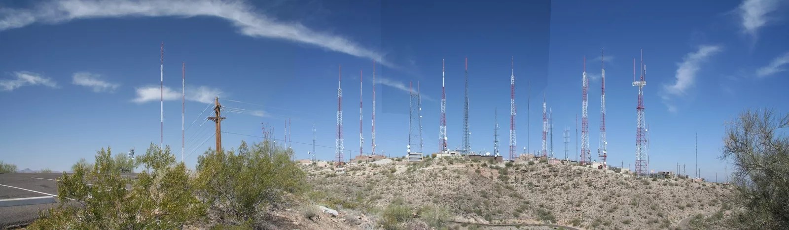 The 42 antennas on the summit of South Mountain broadcast most of the area’s TV and radio signals. They’re among the most prominent landmarks in metro Phoenix; their glowing red lights can be seen at night from almost anywhere in the Valley.