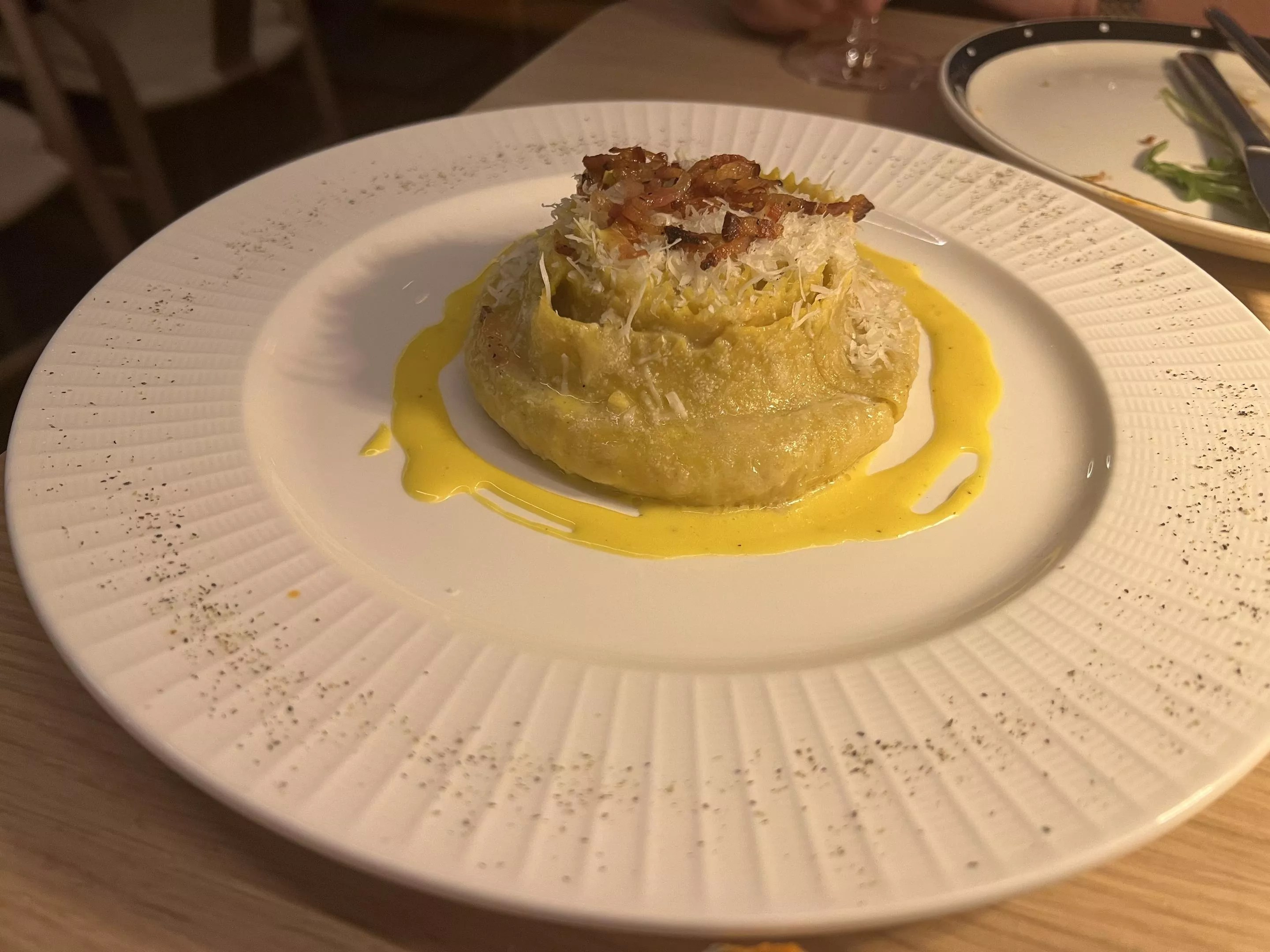 The carbonara ravioli doesn’t look like the typical envelope-style pasta but it’s a delicious deviation.