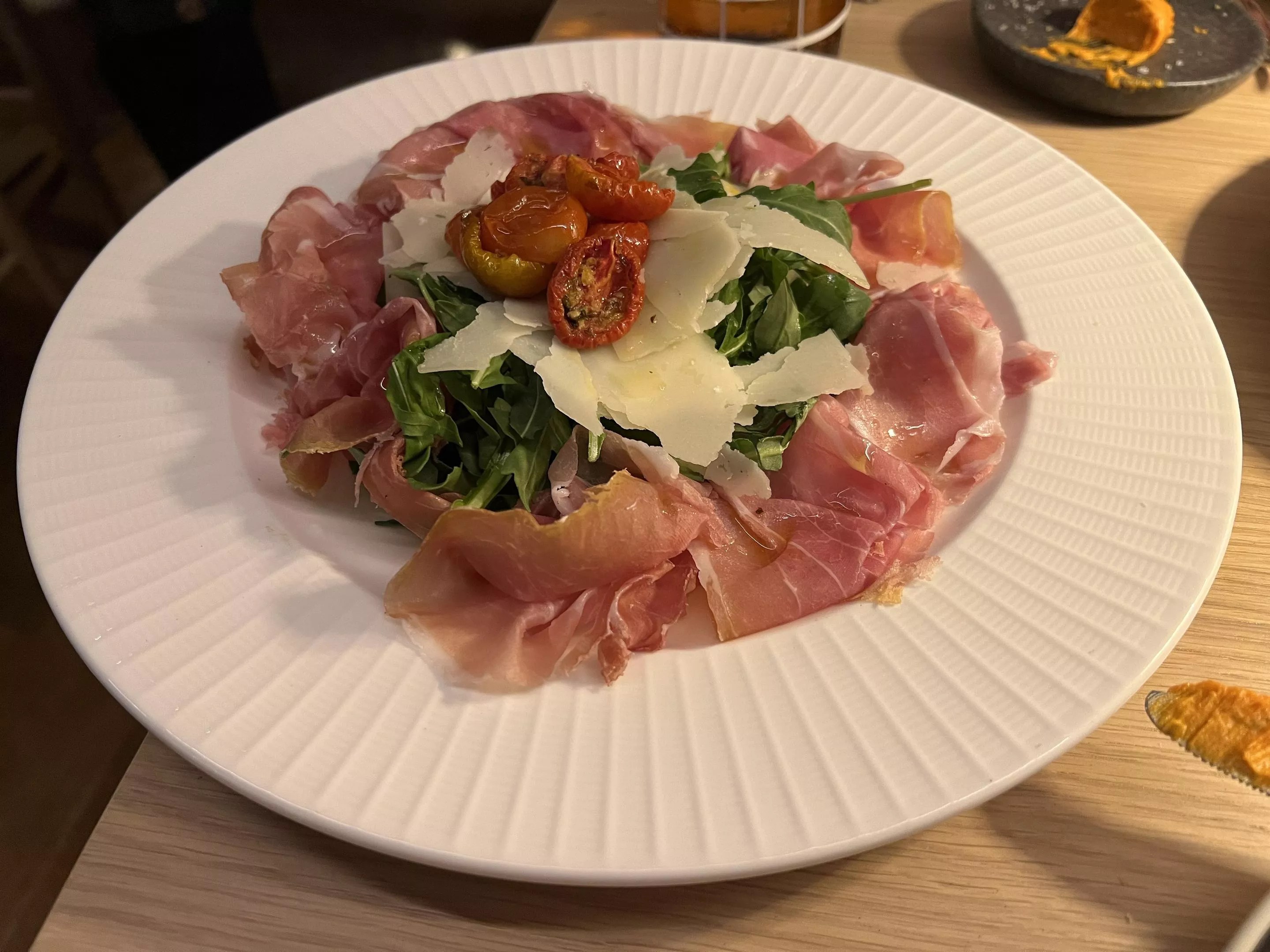 Start your meal with a Crudo of San Daniele prosciutto, aged for 20 months.