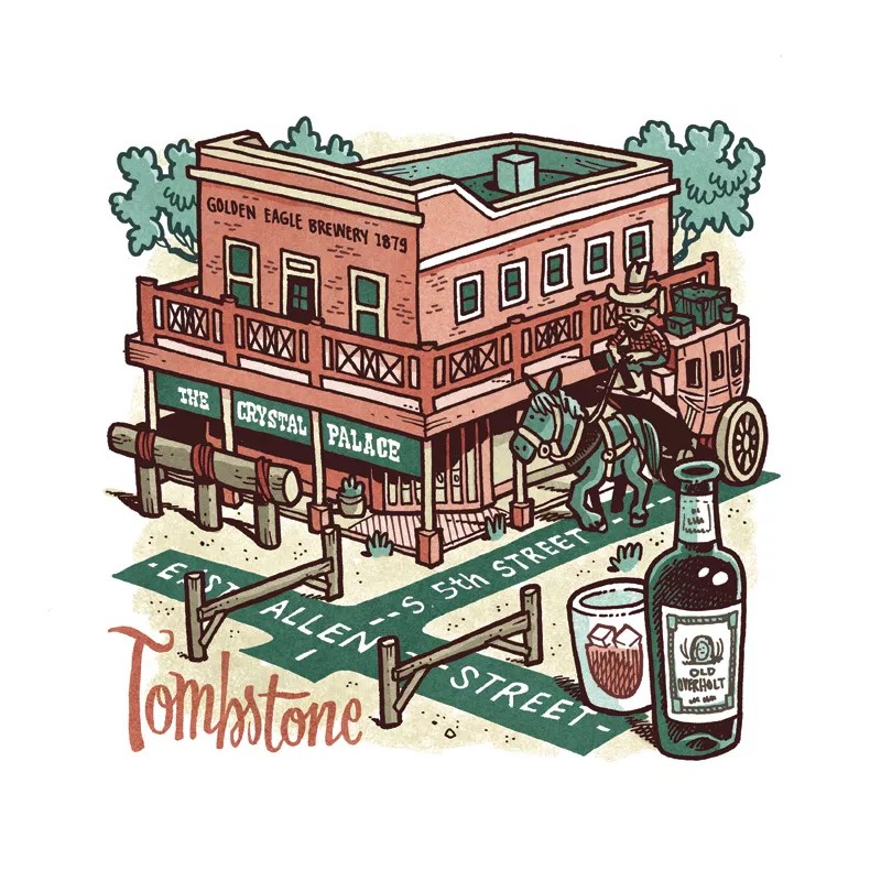 While it may be true that most of this town is a third-rate theme park for European cowboy fetishists, there are a few things here that don’t suck. One is the Goodenough Mine tour where you can walk through the subterranean chambers where migrants used to hack silver from the walls. The other is the Crystal Palace, which used to be a lace-and-cutlery kind of place serving the bourgeoise class, considered respectable enough for Deputy U.S. Marshal Virgil Earp to keep his offices upstairs, and occasionally descend the stairs to play faro and cards. He got shot in the back just down the street after he and his younger brother Wyatt shot it out with accused stagecoach robbers in a nearby alley, bequeathing a lasting tourist industry to this town. “Mythologized beyond recognition, the sordid little saga of Tombstone unfolded in a haze of black powder, mysterious ‘suicides,’ and alcoholic fumes,” wrote historian Thomas Sheridan. The Crystal Palace has survived all this time and still serves up booze from a towering back bar with mirrors. Owner Kim Herring added a kitchen in 2007. The fare is standard bar food like pizza, burgers, and steaks. The outside got a renovation this year; you can now look at the faux gunfights from an outside deck while sipping an Old Overholt whiskey, which happened to be Doc Holliday’s favorite brand. Gone from the back room, however, are the Texas Hold ’em games. Herring got rid of them because of the legalities. Somewhere, Virgil Earp is frowning.