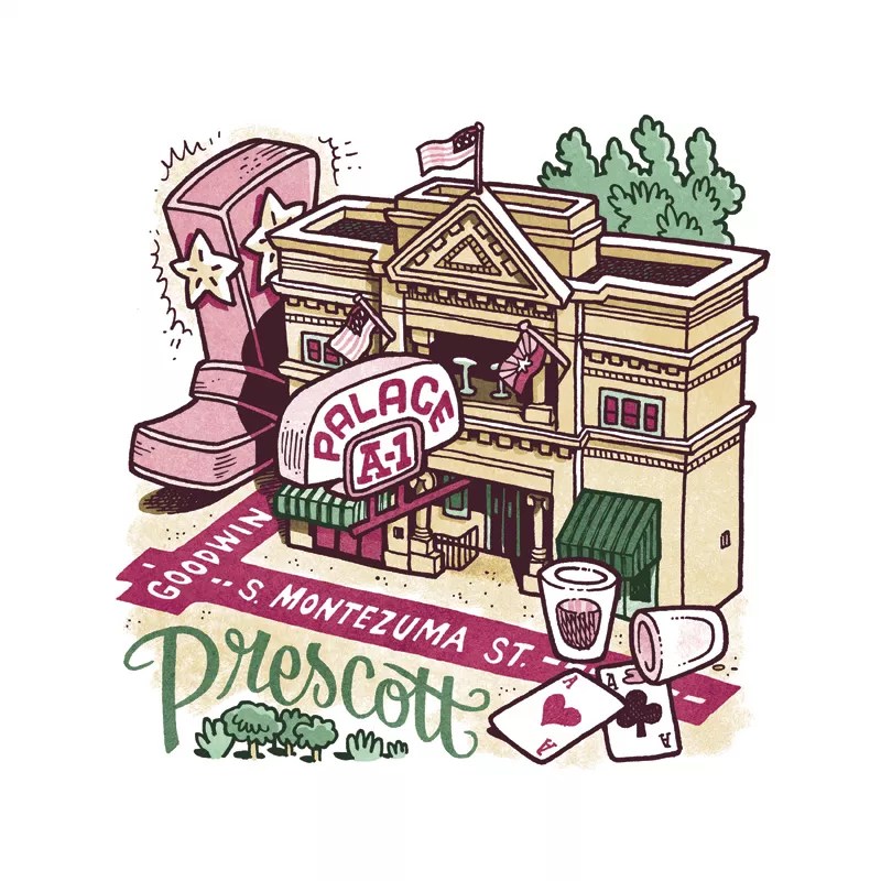 Anchoring the western end of the state’s most graceful courthouse is a line of bars called Whiskey Row. The monarch of them is The Palace, operating since 1877, making it the strongest contender for the state’s oldest operating saloon, a title that gets fuzzy when periods of closure and reconstruction are taken into account. The gunfighter Doc Holliday claimed to have won $10,000 at the poker tables here. A fire leveled it in 1900, but patrons carried the hand-carved oak bar away from the flames and kept drinking. Rebuilt the next year and renovated again two decades ago, The Palace shows off a handsome tin ceiling and multiple historic photos on the wall. One now-embarrassing feature of the bar’s history: It was a social gathering spot for the “Smoki,” a bunch of white businessmen who dressed up like Hopi Indians as a part of the pageantry surrounding the Frontier Days Rodeo. Belonging to this group was a ticket to local influence that dated to 1921. The ceremonial mimicry, including a phony “snake dance,” died out amid Native American protests two decades ago. Today the hokiest activity at The Palace is a New Year’s Eve “boot drop” featuring a 6-foot-tall cowboy boot lit up with colored lights and lowered from the ladder of a fire engine.
