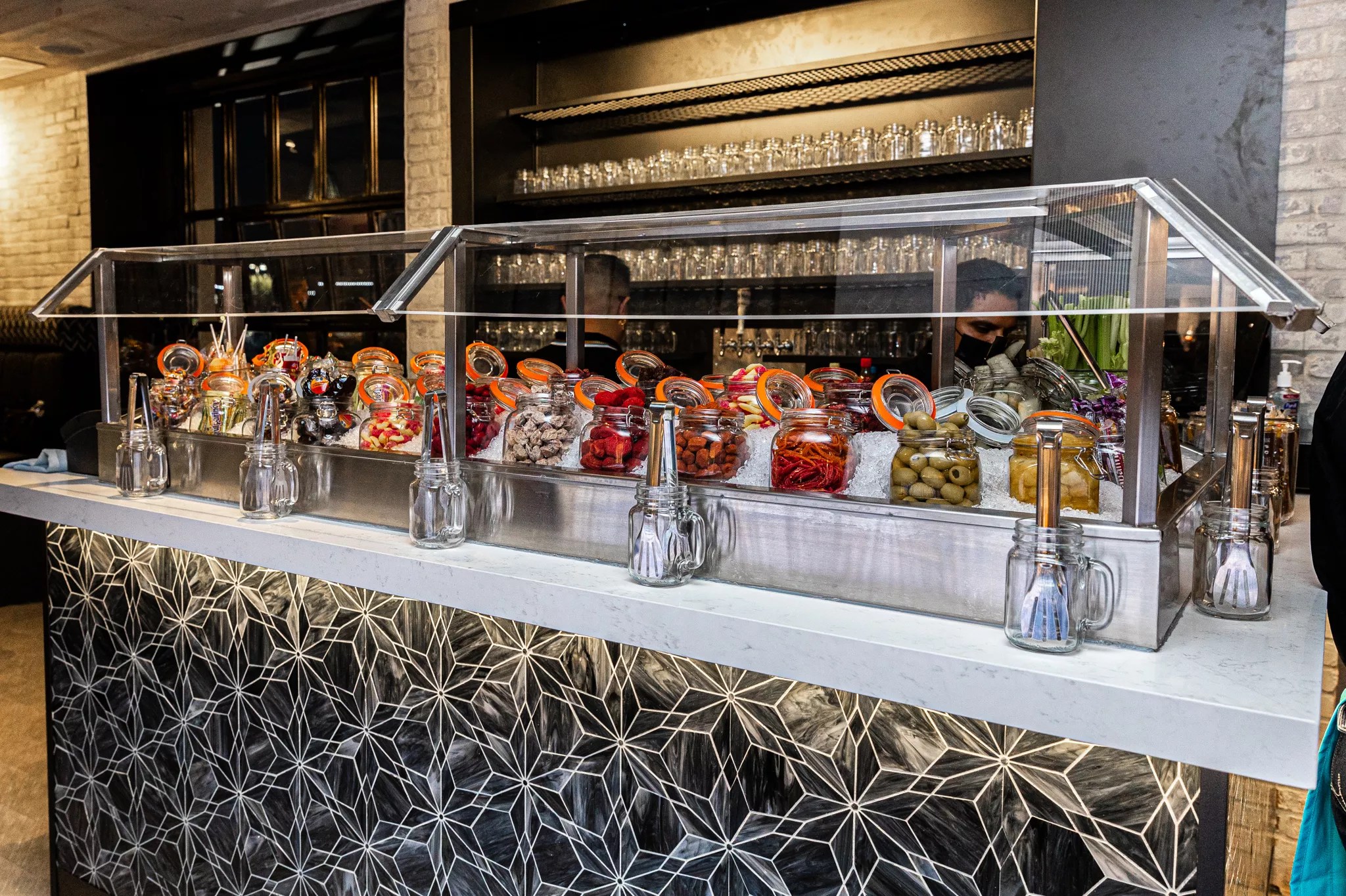 It’s a social space and the build-your-own Michelada bar reflects that, with infused tequila, Mexican draught beer and more than 40 toppings, like Tamarindo sticks, oysters and shrimp cocktail. (An ode to the BYO Bloody Mary bar at the restaurant group’s Hash Kitchen? We think so.) Frozen margarita flights are also on the menu, as well as mucho tequila, and mezcal.