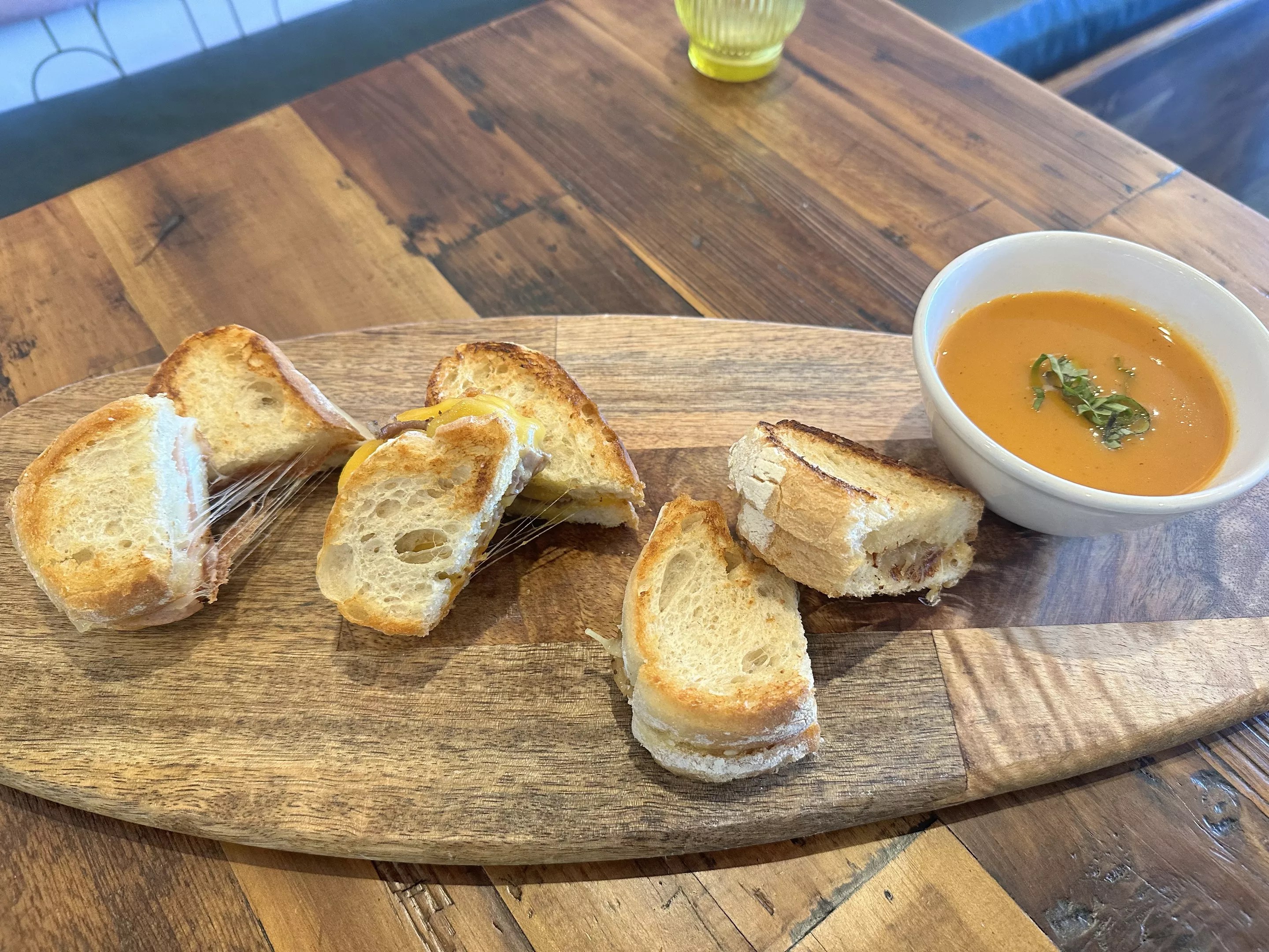 A popular menu item at Mingle + Graze is the grilled cheese flight, served with tomato soup.