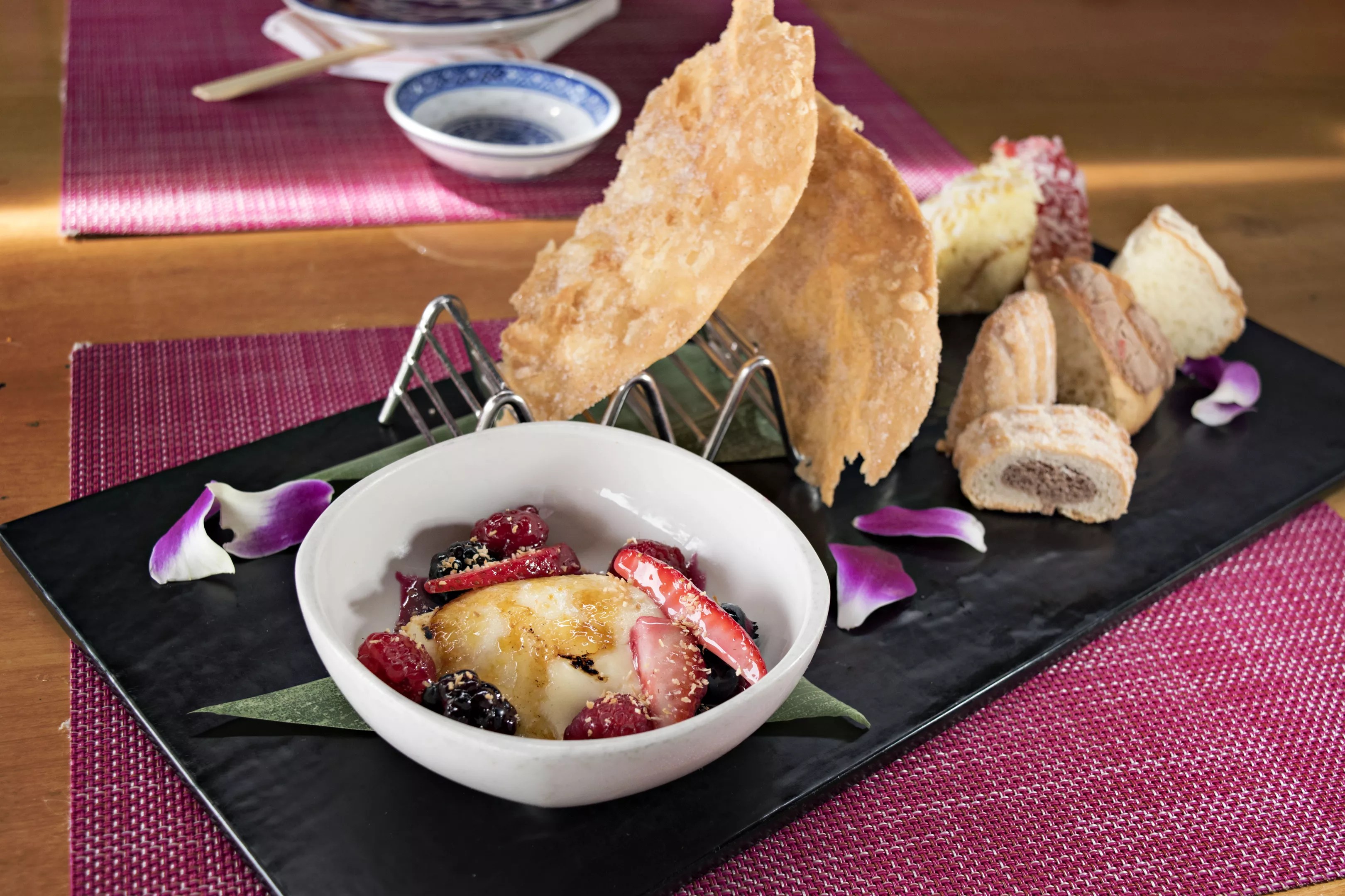 Another entrée, waygu steak and eggs, fared a lot better. The spruced-up take on the classic breakfast duo features grizzled strips of salty-rich steak, dressed up in a delicious coconut miso sauce. A poached egg, cradled inside a crisp wonton, contributes a nice lilt of sweetness to the plate.