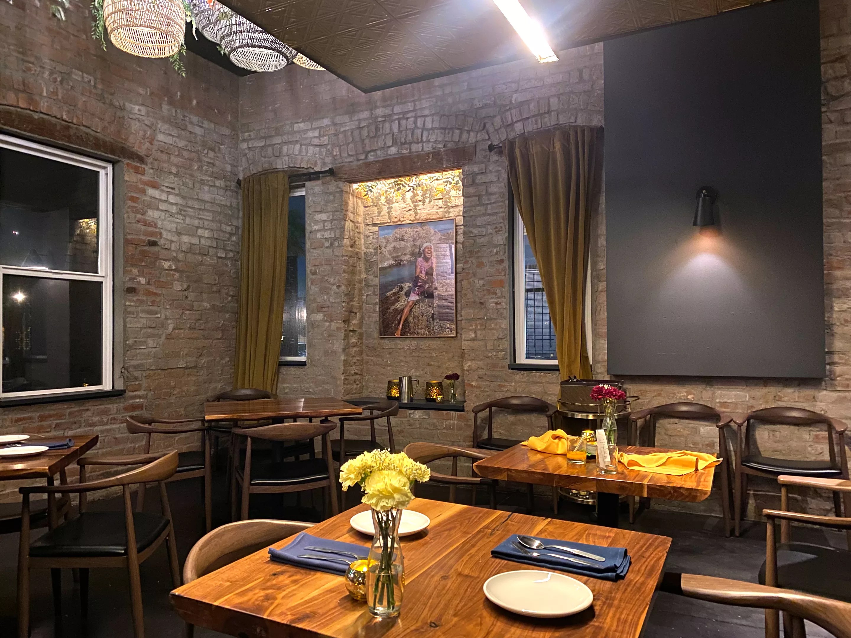 The Thai restaurant debuted in March, serving the regional cuisines of its motherland from a cozy space with exposed brick and mustard velvet curtains. A smiling hostess greets customers as they enter the restaurant.