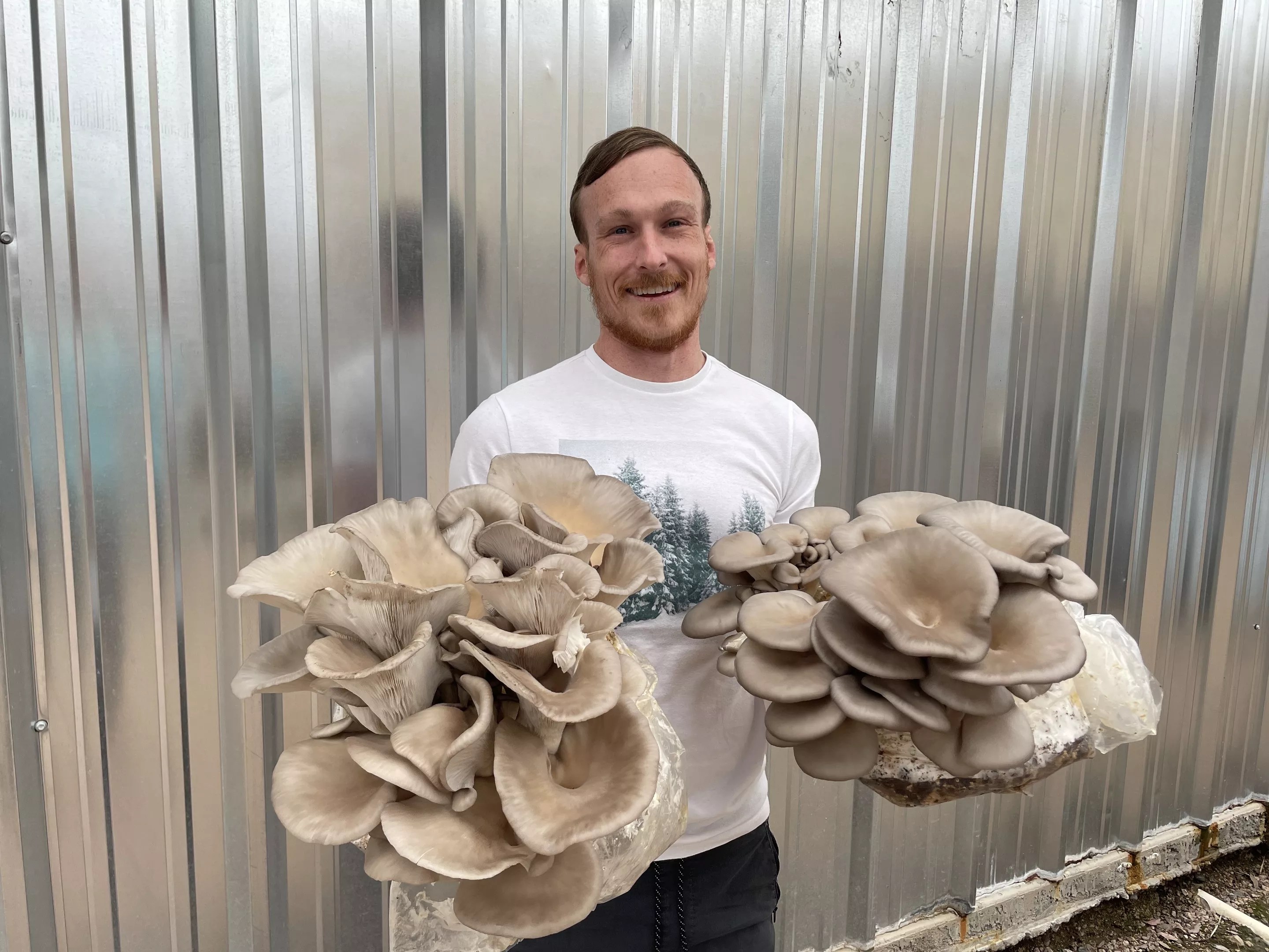 The professor who ran the garden taught him about growing mushrooms, and they worked together to find a process that would allow oyster mushrooms to fruit more quickly.