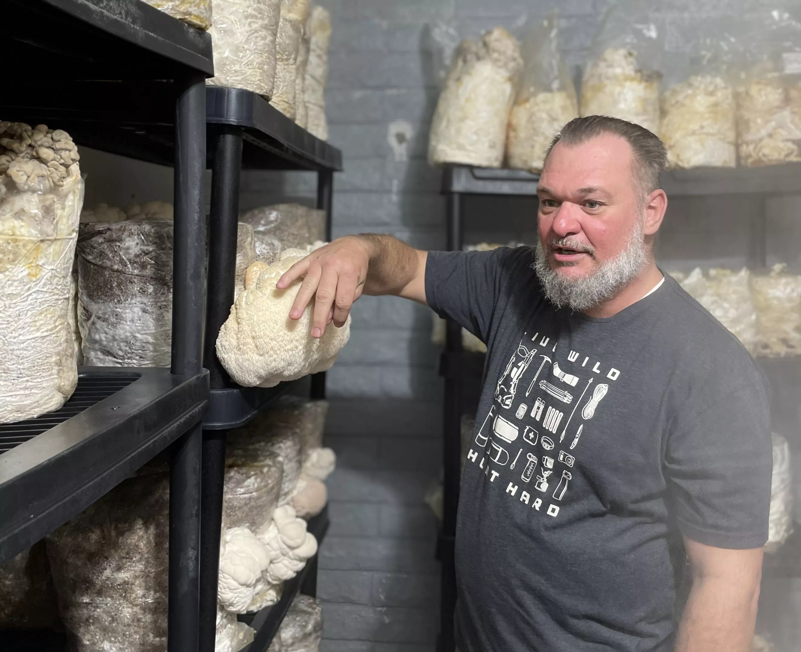 Brian Hedger started Hypha Foods with blue oyster mushrooms. He is expanding the business to include microgreens and imported produce and meats.