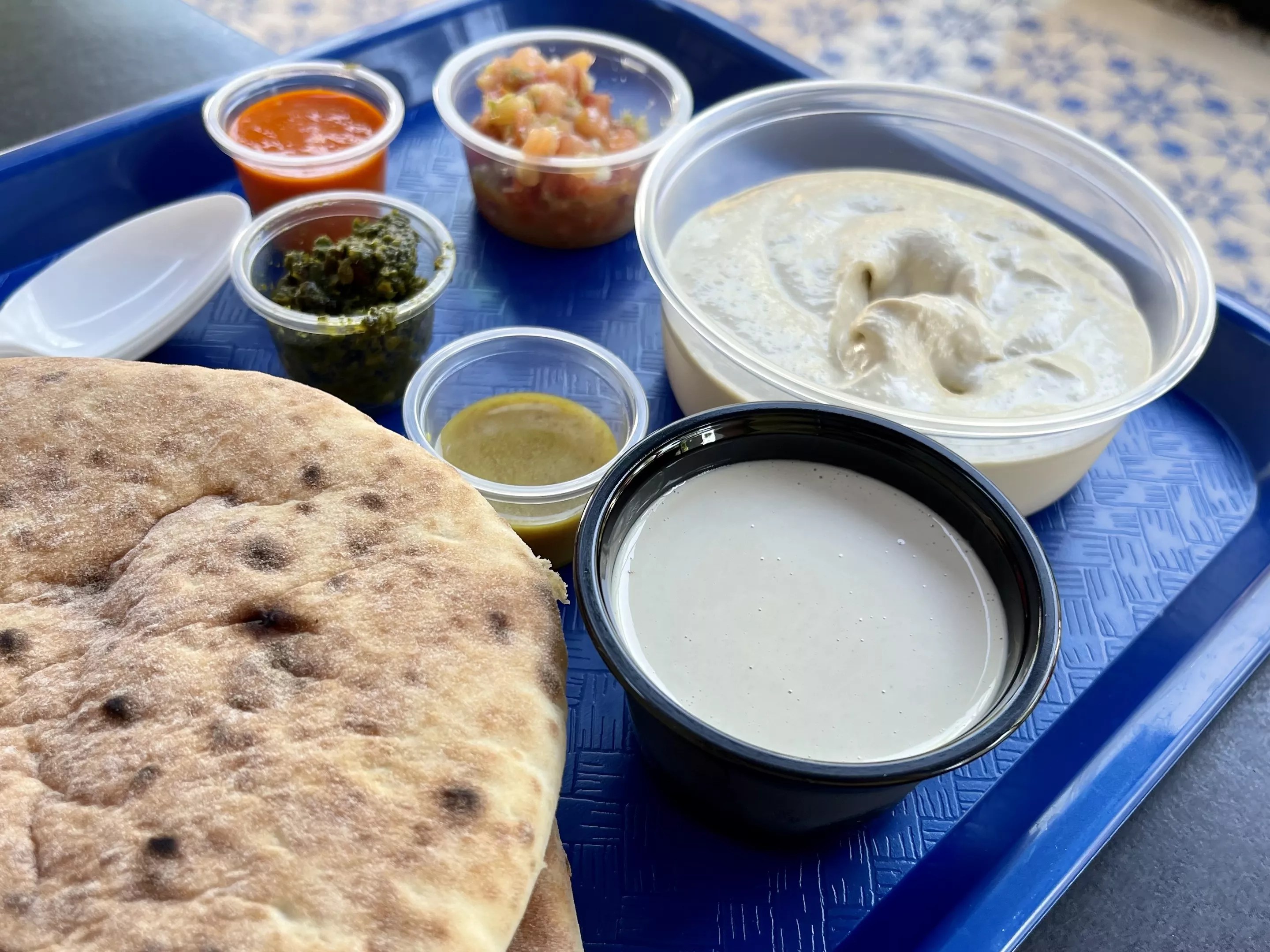 Those in the know order hummus plates, and many of those customers, Harat says, find his cart through Israeli community groups on Facebook.