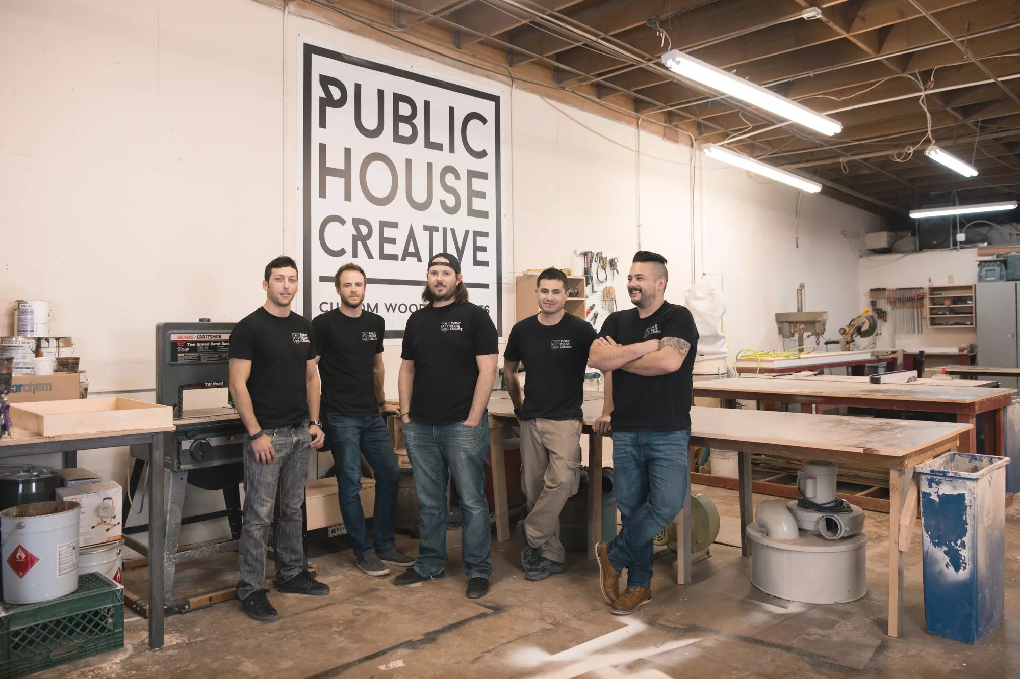 It went something like this: “Here’s your $1,000, here’s my $1,000, let’s go,” Faulkner says. “It took us a long time to realize we could do this for real.” Now Public House creative needed a bigger team. Faulker’s experience lent to construction; Raymo’s patience ensured he’d be painting and putting on the finishing touches. They hired their first people in 2016, and now there are eight employees.