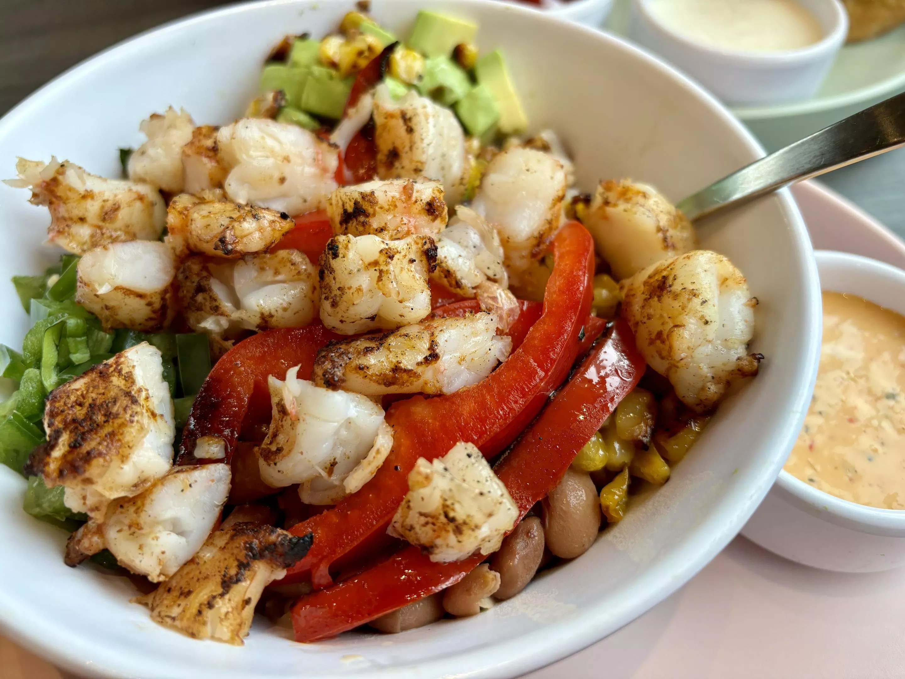 4130 N. Seventh Ave.Valentine frequently finds itself on lists of this nature. But chef Donald Hawk, pastry chef Crystal Kass and their team just continue to knock out exceptional eats. Our latest find was the Churro Waffle, a decadent dish that perfectly blends its two namesakes. Listed on the breakfast and brunch menu, this would be quite an intense way to start your day. We’d suggest sharing the sugar bomb with a friend over coffee or as a dessert. The sweet looks like a waffle, but tastes like a churro. It’s seriously crunchy on the outside, yet soft inside with a satisfying chew. The whole thing is crusted in cinnamon sugar which sprinkles itself all over the table as you enjoy. The topping that takes the whole thing up a notch is the cajeta. Familiar to those who have tired Valentine’s cajeta latte, this buttery caramel plays almost like a nutty butterscotch. On top of that, there’s a pile of cool whipped cream that adds a cold note to the hot waffle and melty cajeta. It’s sweet, a little salty, crunchy and creamy and positively decadent. Our server recommended adding grilled shrimp to the Sonoran Wheat Berry Bowl, and he didn’t lead us astray. Tirion Boan
