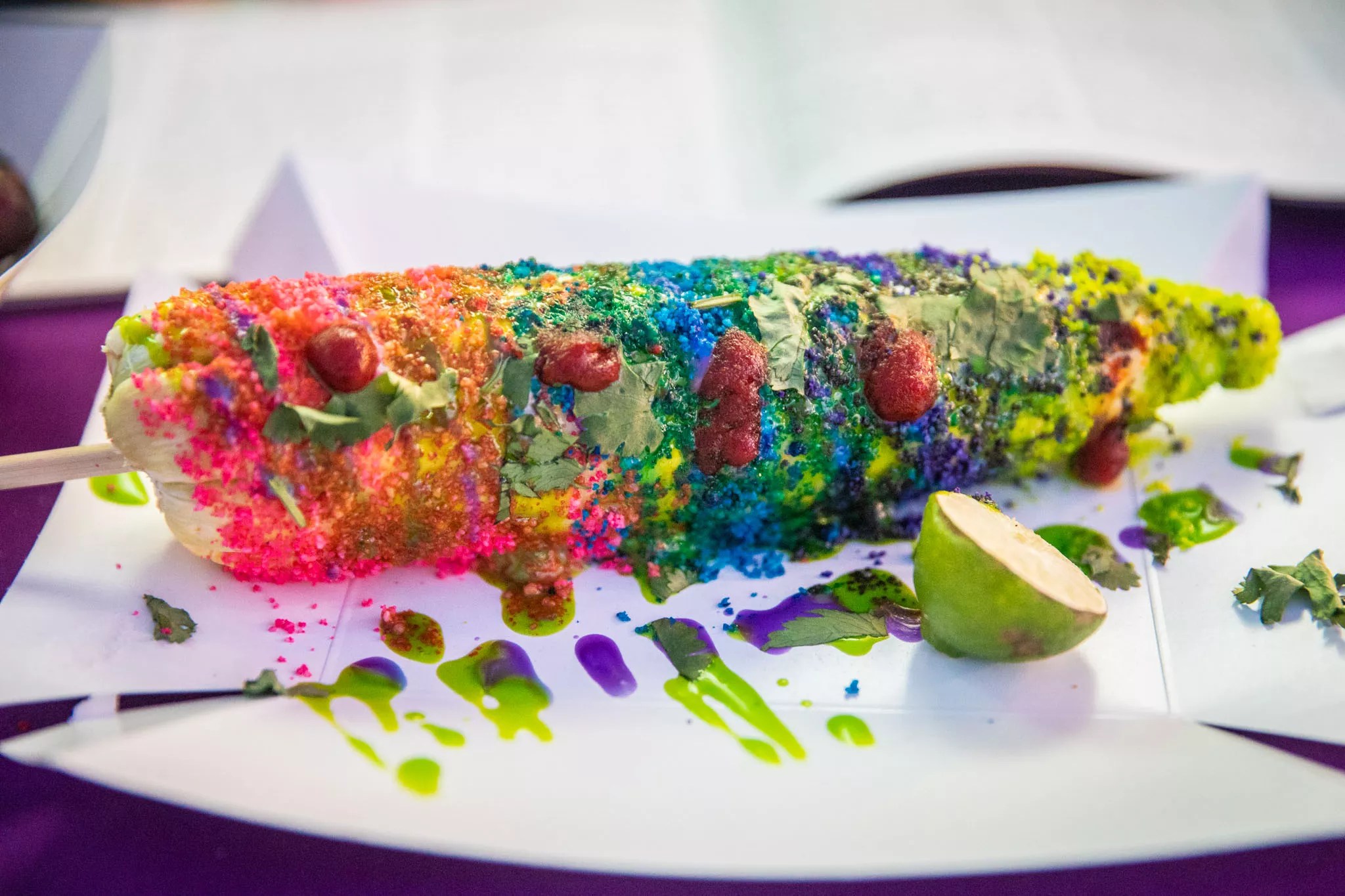 Rainbow elote from Twisted Munchies was so colorful.