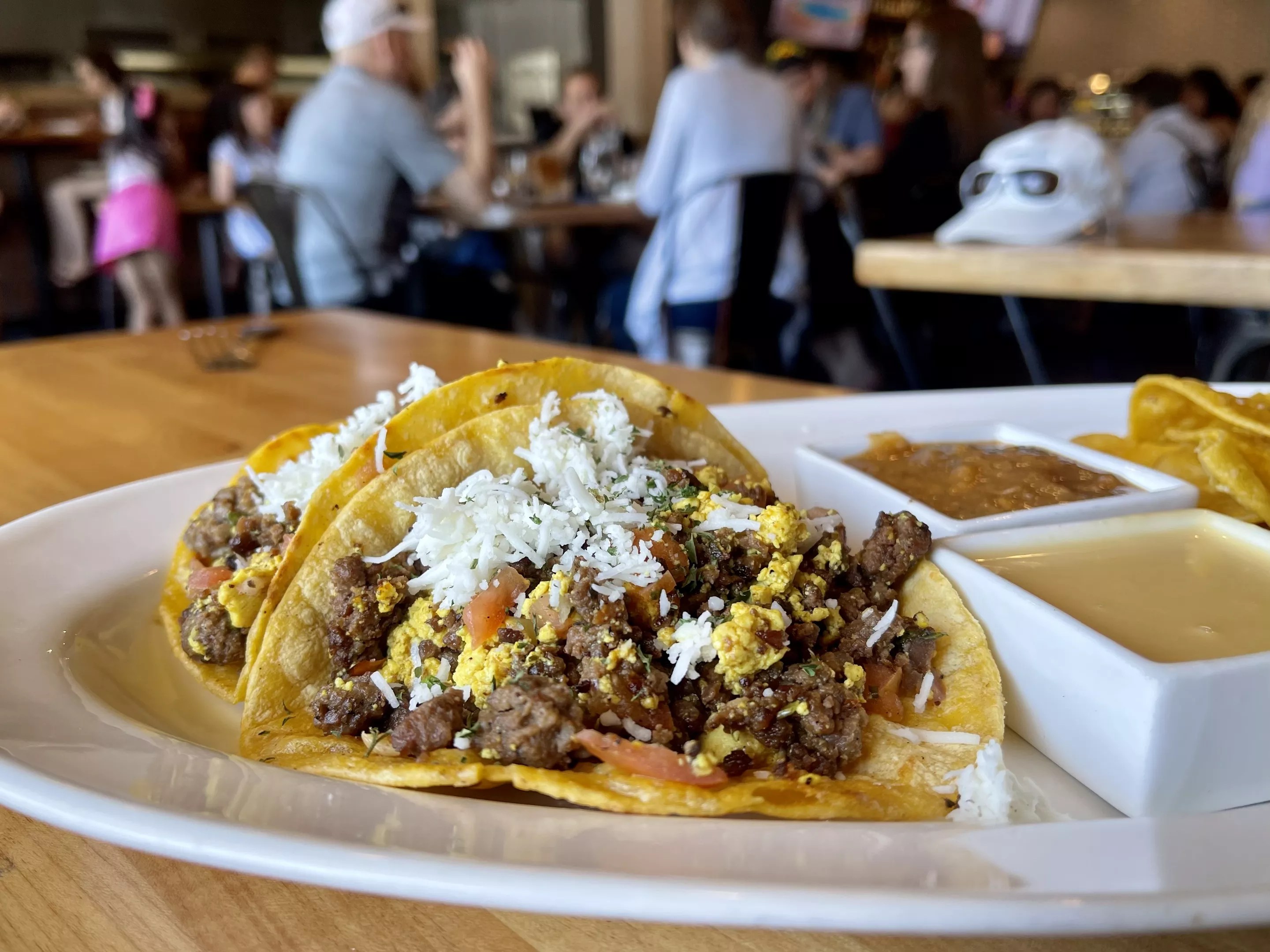 2014 N. Seventh St.The big draw at Nami, the sibling cafe to Green New American Restaurant, is its tSoynami soft serve stirred up with cookies, peanut butter, fresh fruit and more. But don’t sleep on the rest of this all-day vegan cafe’s menu, which includes coffee, pastries and a slate of breakfast dishes. Diners can choose from breakfast sandwiches, bagels, yogurt parfaits and burritos until 10:30 a.m., but a selection of those wraps is available until 2 p.m. For a surprising take on a classic, try the Hot Mess Burrito. It starts with a traditional foundation: scrambled tofu, homestyle potatoes, melted cheddar and spicy Beyond Sausage that’s been split and griddled. Before it’s wrapped and toasted, this burrito is dressed with a smoky dill pickle aioli. The pickle chips in the burrito are a quirky surprise, but they work by adding some brightness and crunch. Before you leave the cafe, grab a sweet treat, like the Oatmeal Cream Pie. In this ode to the nostalgic packaged treats, two housemade, cinnamon-scented cookies are sandwiched with vanilla icing. Try multiple protein options with a combination plate at Tacos Veganos. Tirion Boan